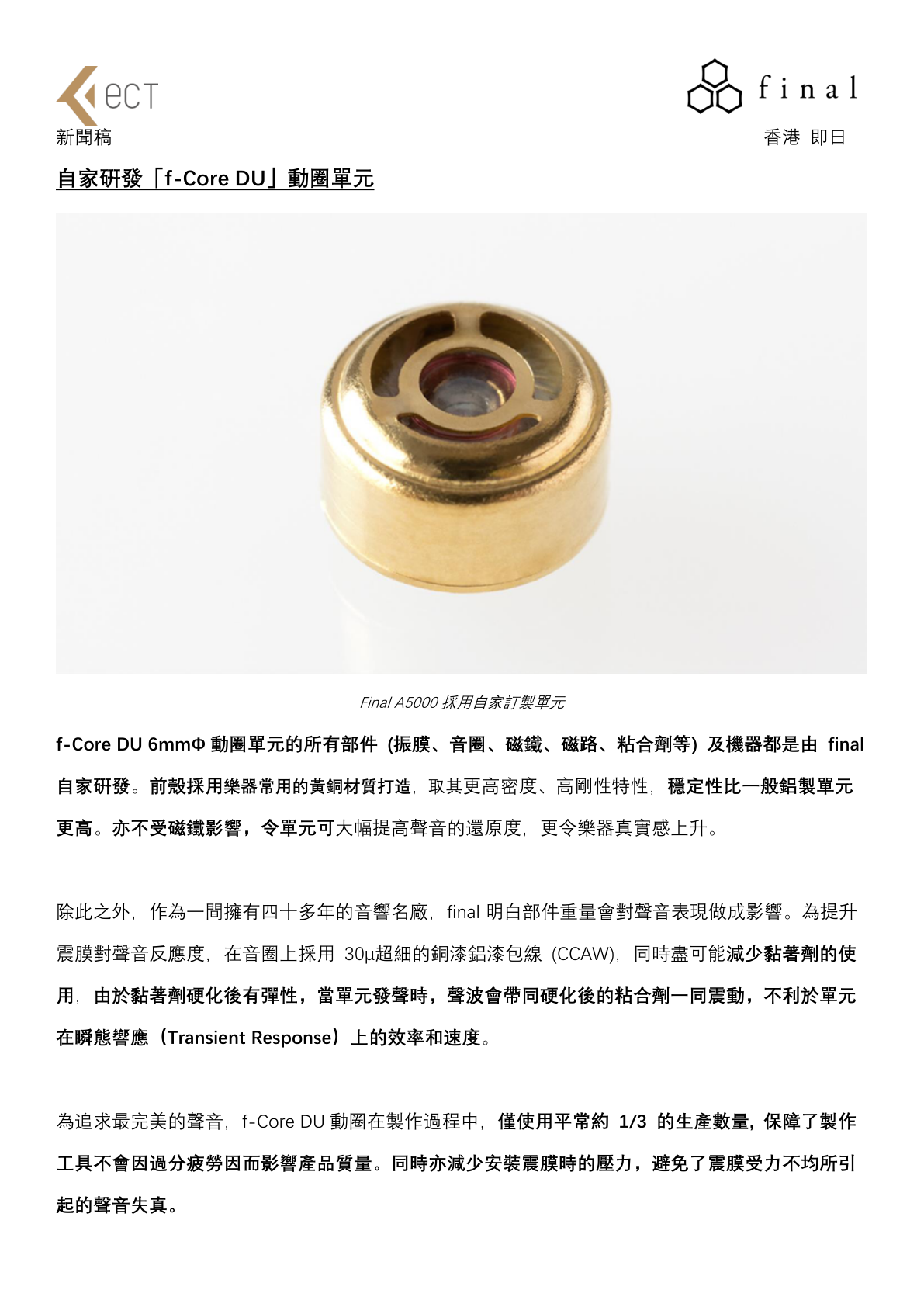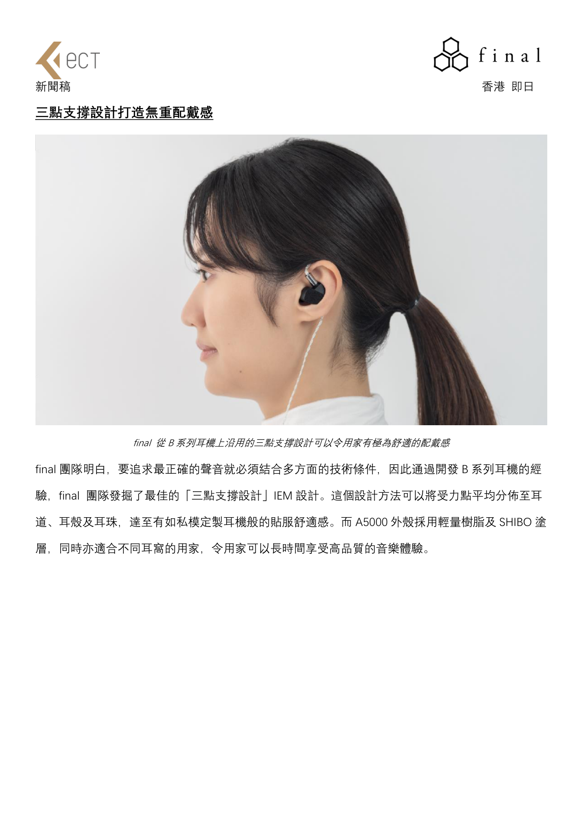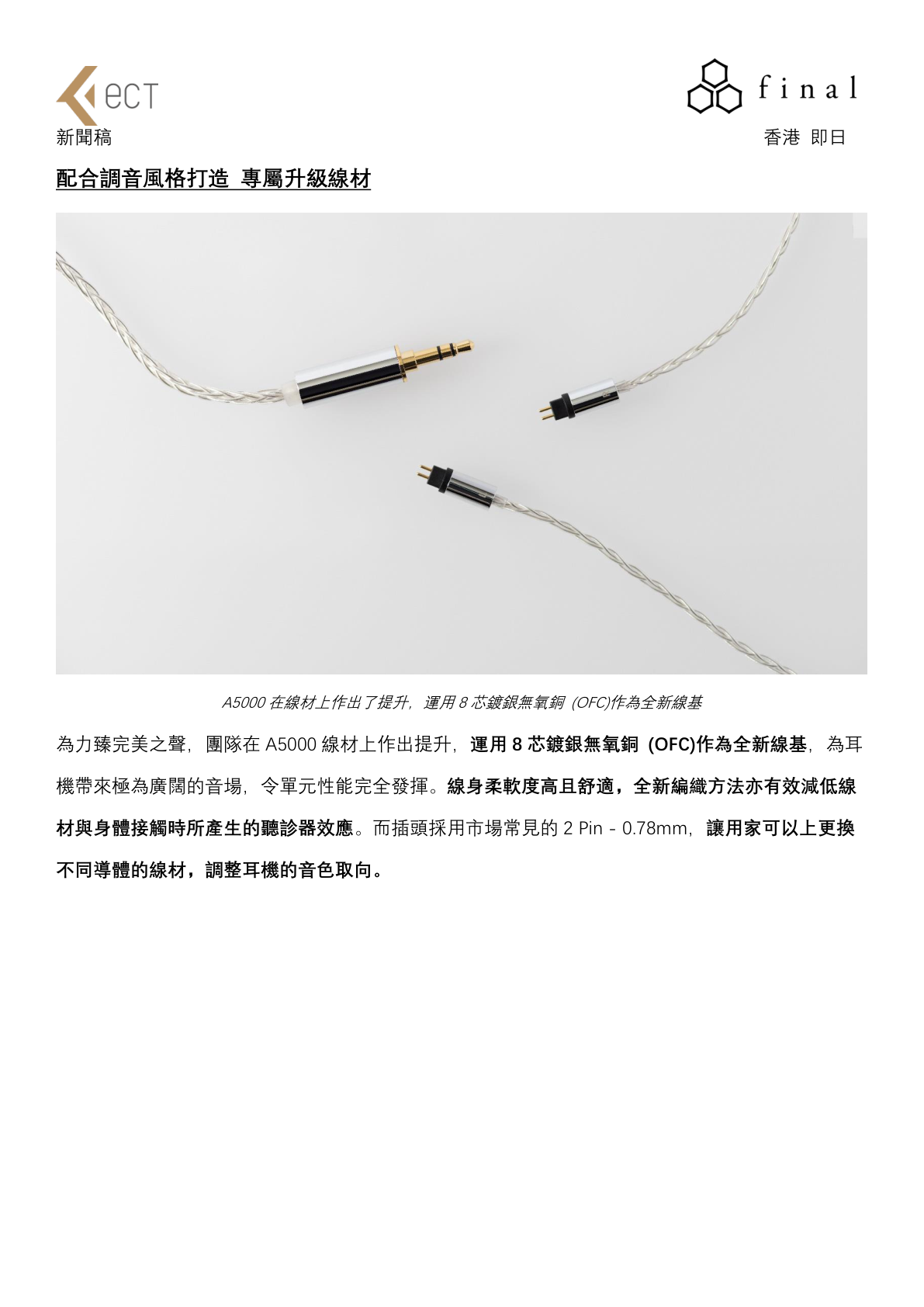 過去 final A 系列曾為一眾樂迷帶來極為驚豔的產品,有高性價比的 A3000、A4000 以及旗艦級A8000,通過每一款擁有不同聲音風格的耳機,致力從不同價位為樂迷打造完美的音樂享受。為了追求正常且完美的聲音,團隊在 2022 年尾從線材、機身質感上進行全面提升, 再次採用量產動圈單元打造具透明感及高細緻度的聽感體驗, 亦跟據 A5000 的調音配搭全新鍍銀無氧銅 (OFC)線材, 將單元聲音完全發揮, 令樂迷可以從一覽無遺的角度欣賞音樂。