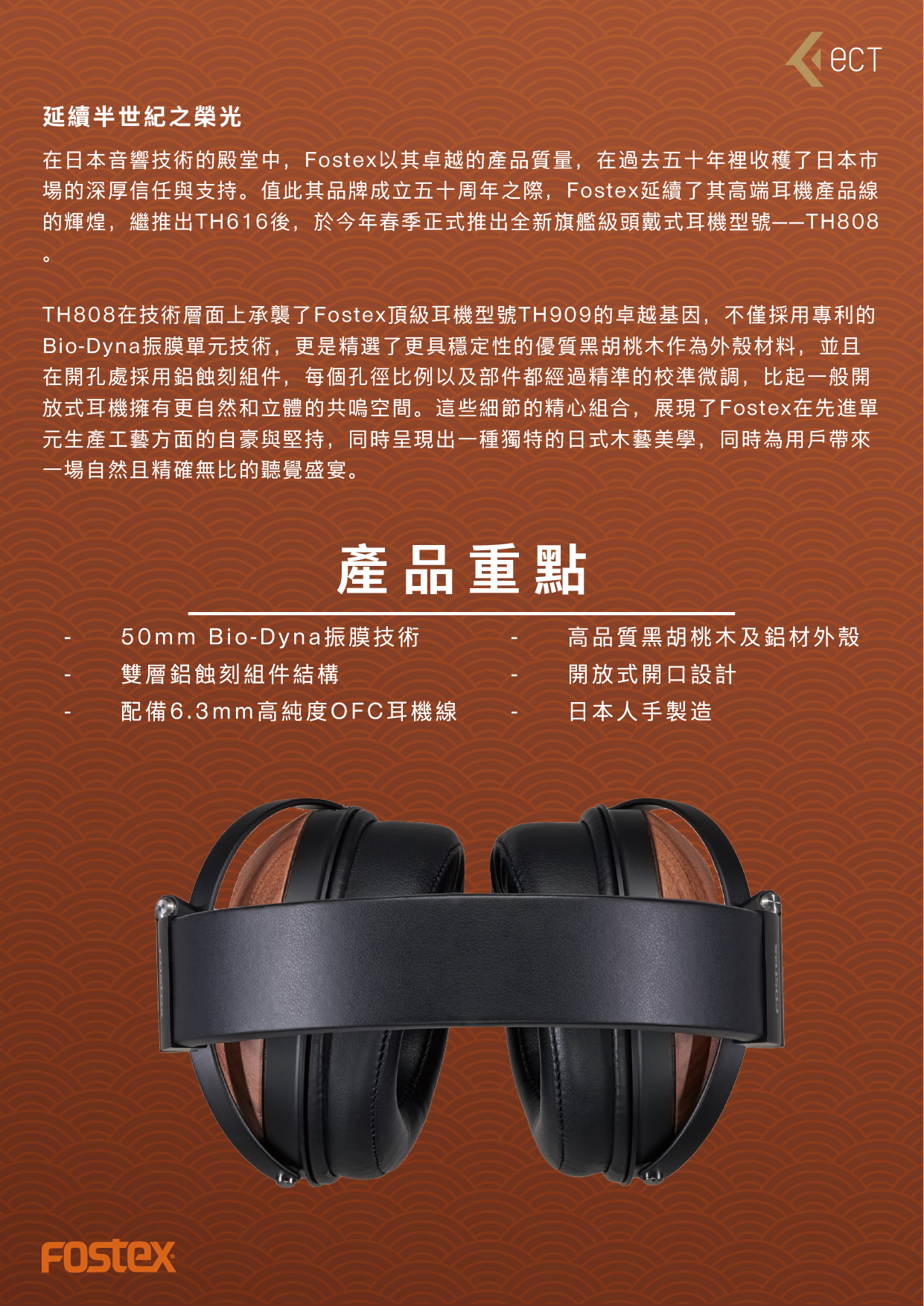 在日本音響技術的殿堂中,Fostex以其卓越的產品質量,在過去五十年裡收穫了日本市場的深厚信任與支持。值此其品牌成立五十周年之際,Fostex延續了其高端耳機產品線的輝煌,繼推出TH616後,於今年春季正式推出全新旗艦級頭戴式耳機型號——TH808。