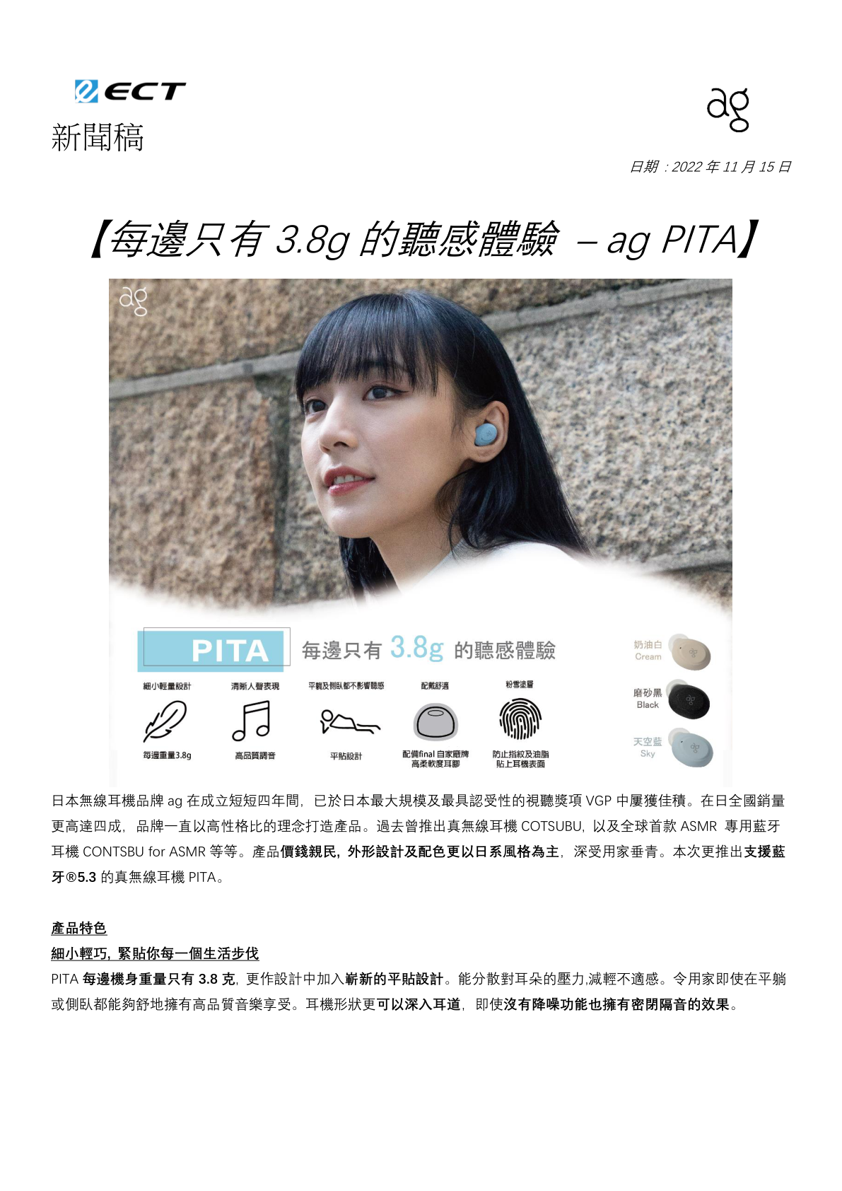 每邊只有 3.8g 的聽感體驗 – ag PITA