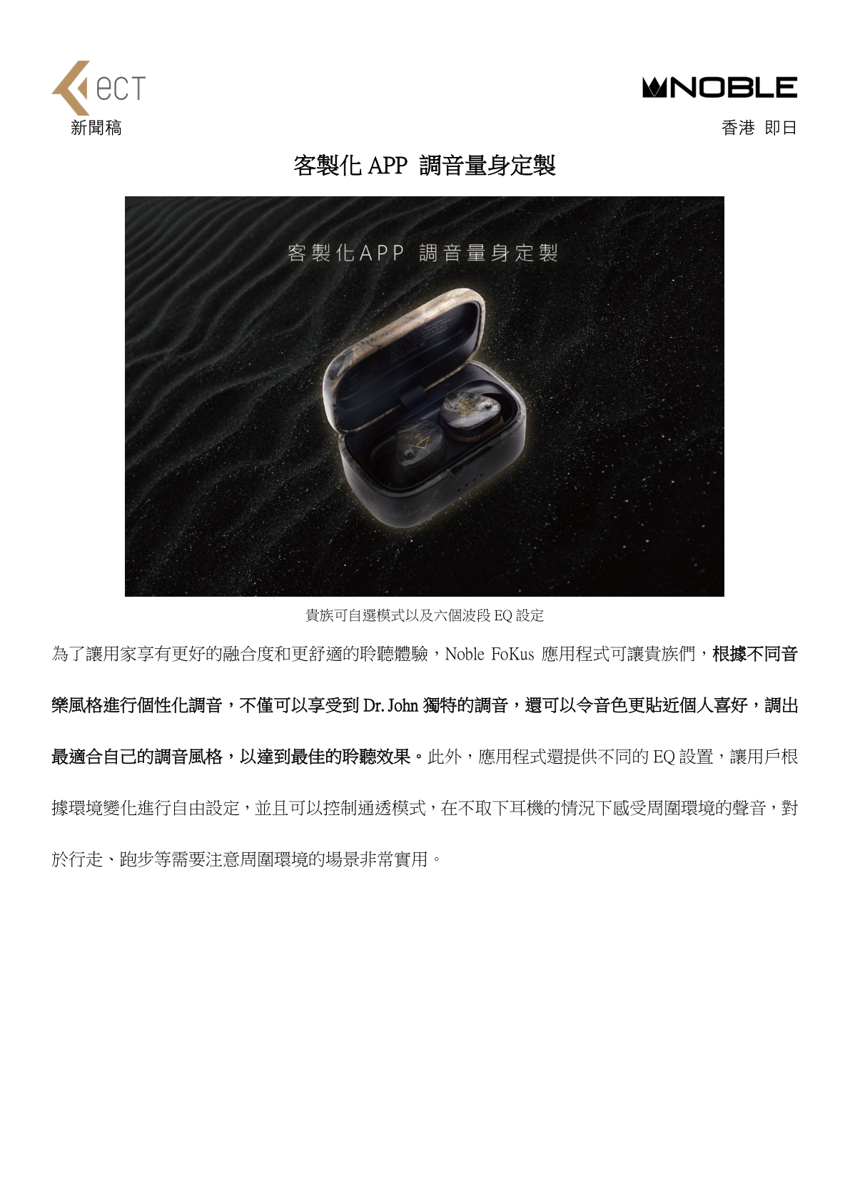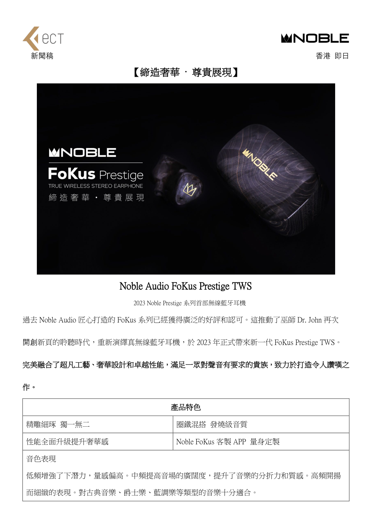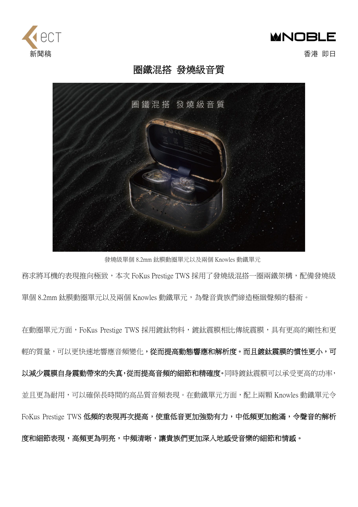 過去 Noble Audio 匠心打造的 FoKus 系列已經獲得廣泛的好評和認可。這推動了巫師 Dr. John 再次開創新頁的聆聽時代,重新演繹真無線藍牙耳機,於 2023 年正式帶來新一代 FoKus Prestige TWS。完美融合了超凡工藝、奢華設計和卓越性能,滿足一眾對聲音有要求的貴族,致力於打造令人讚嘆之作。