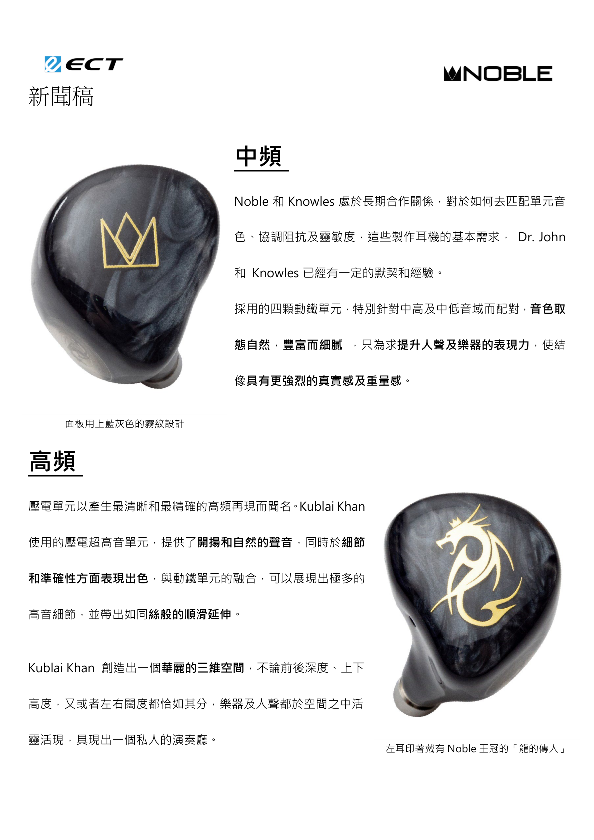 凱撒 Kasier、可汗 Kahn、蘇丹 Sultan、維京 Viking,Noble Audio 手中的作品無疑都是各個時代中的顯赫王者,注定是為貴族們而打造的尊爵般存在。相隔三年,蠢蠢欲動,蒙古帝國改朝換位,迎來第二任可汗 Kublai Khan (忽必烈可汗) 攜同手下猛將 「蒙古鐵騎 Kadence 」、「黃金戰袍 DXII 」,以及紀念型號 Jade 大舉進攻,勢必迎來貴族們的新一輪輝煌盛世!
