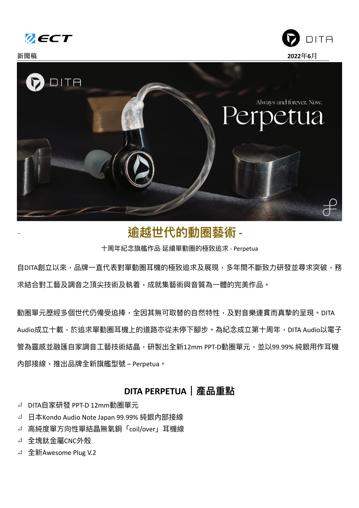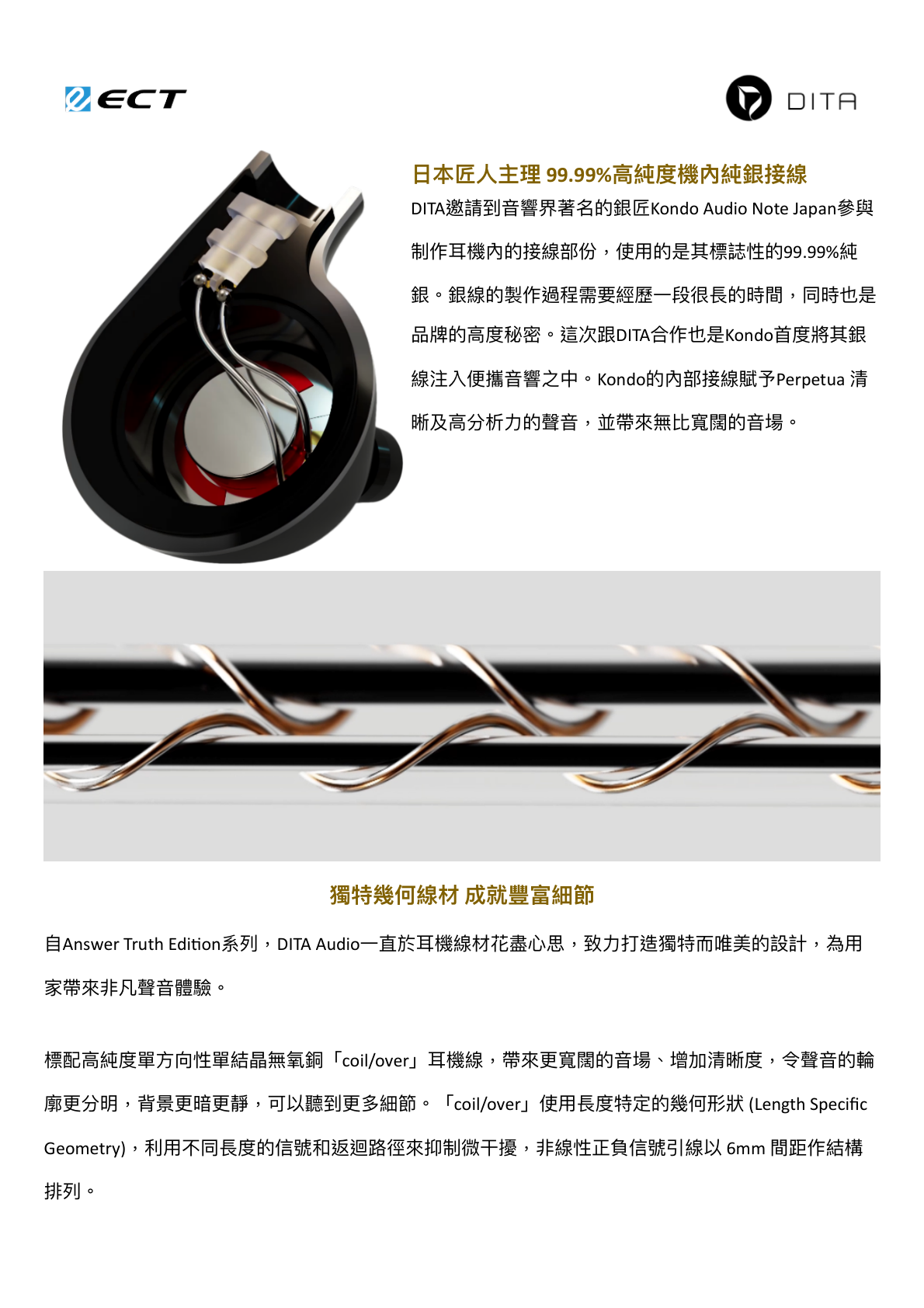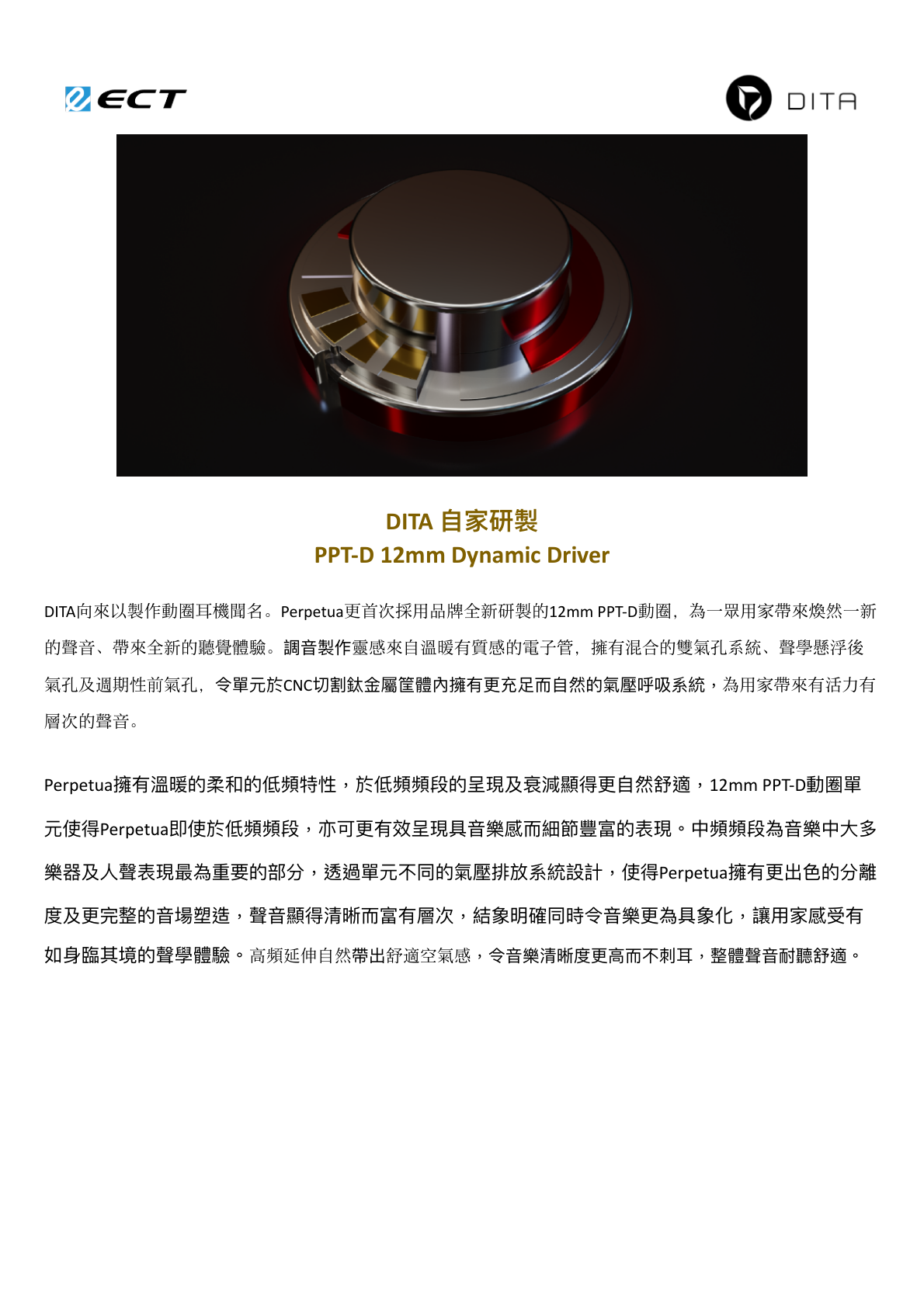 ⾃DITA創立以來,品牌⼀直代表對單動圈耳機的極致追求及展現,多年間不斷致⼒研發並尋求突破,務求結合對⼯藝及調⾳之頂尖技術及執着,成就集藝術與⾳質為⼀體的完美作品。