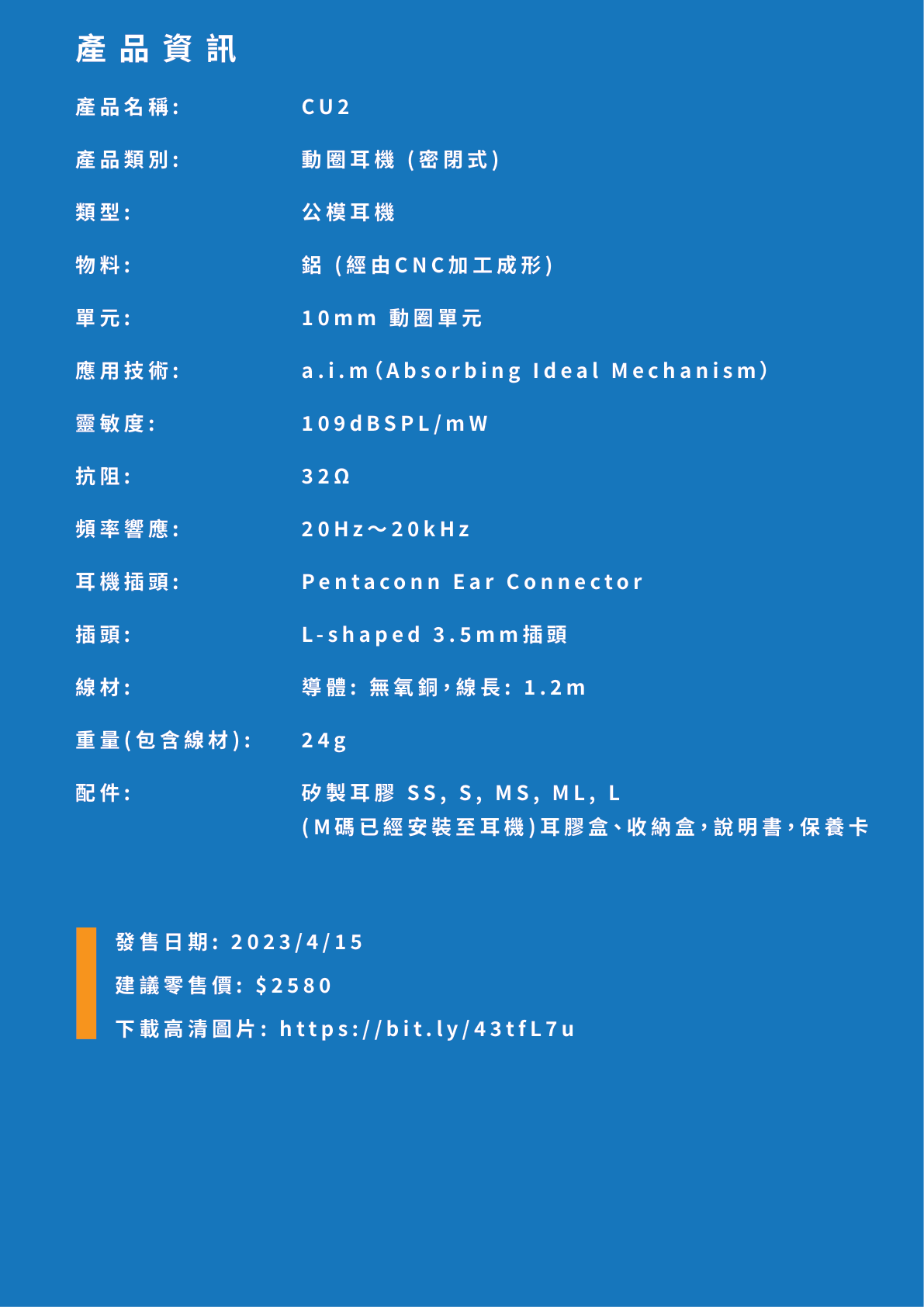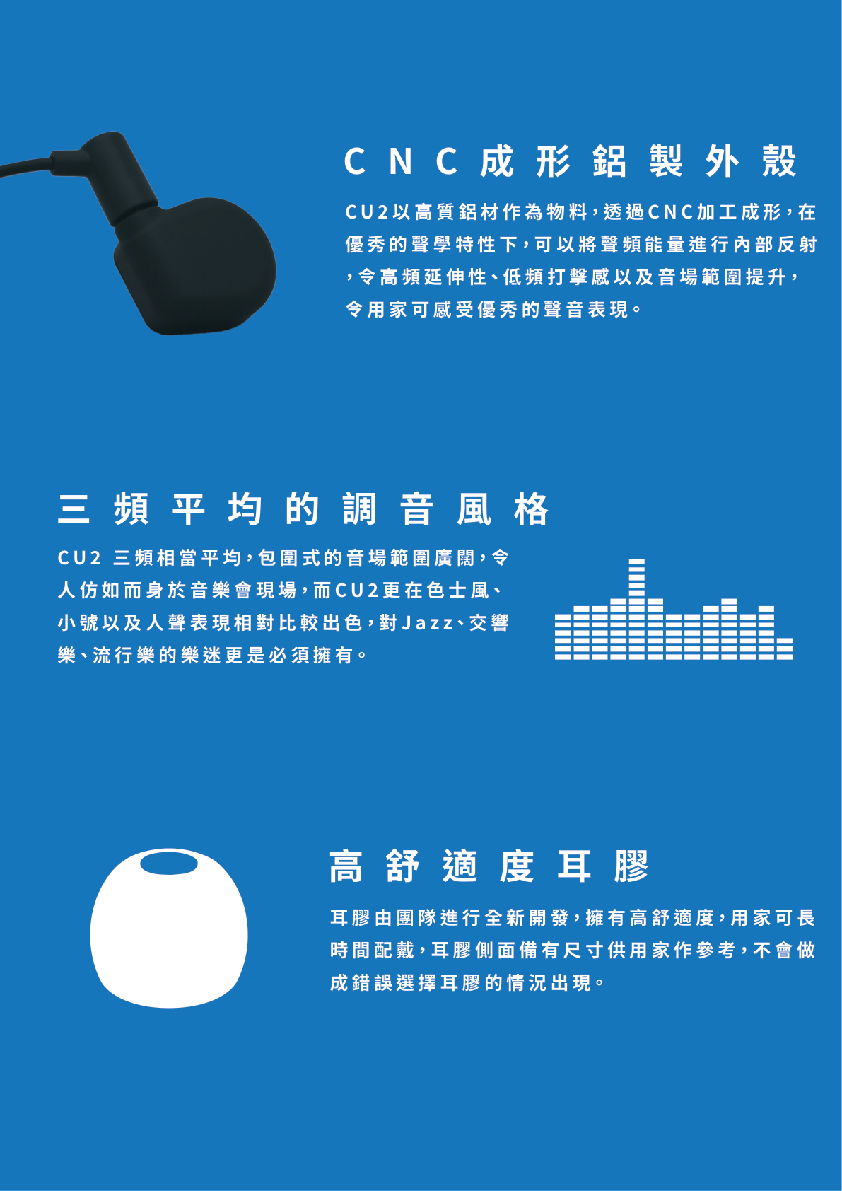 過去 Artio 藉由獨特的電聲技術,打造出多款能夠模擬雙聲道喇叭音場的入耳式耳機,本年度團隊再次在 CU 系列耳機的基礎上再作提升,以品牌專利技術 a.i.m 突破入耳式耳機的音場界限,打造全新產品 CU2。