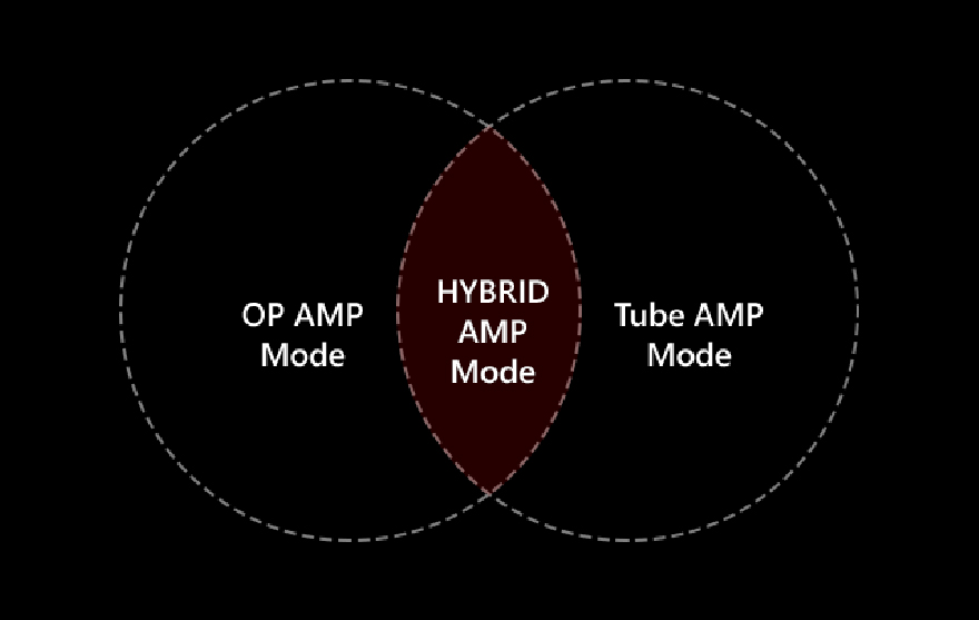 結合了真空管放大器和電子放大器的特點,旨在保留兩者的優點,同時提供更多元化的音色表現。這種放大模式在高解析度的聲音基礎上,加入了具有音樂感的音色,整體音色和三頻比例也較為均衡中性,使得聲音不僅耐聽,而且適合多種不同的音樂風格。整體樂器和人聲的音色定位、調音細節及頻段風格都會根據真空管和電子放大器介入的程度而有所不同。這為用戶提供了根據自身的設備和音樂偏好來選擇合適音色配搭的靈活性。