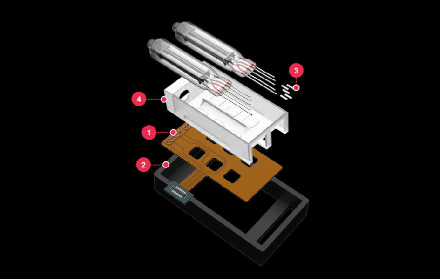 在便攜播放器的設計與領域中,真空管的應用一直諸多挑戰,特別是在確保設備的整體耐用性和音質純淨度方面,這是由於在便攜設備中使用真空管容易受到機身搖晃或碰撞的影響,進而產生顫噪效應(Microphonic Effect)。這最終導致在輸出放大中容易引發噪音和失真,不僅影響音色的最終表現,還可能縮短真空管的壽命,並對播放器的結構造成損害。此外,真空管若安裝於電路板(PCB)上,其附近的集成電路可能會導致干擾和底噪,增加背景噪聲,且損失音樂細節。