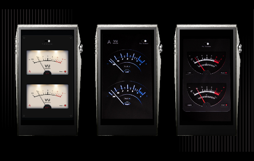 VU表自問世以來,一直是專業音頻設備中不可或缺的經典元素,其主要功能是展示聲音訊號的電壓水平,藉此協助用家測量及調整音量。在SP3000T上,用家可透過底部的控制欄進入VU Meter 儀錶界面,並且可以切換三種不同風格的主題,無論是在聆聽本地音樂庫或是通過Open App Service聆聽串流音樂,都能實時監控音量水平。