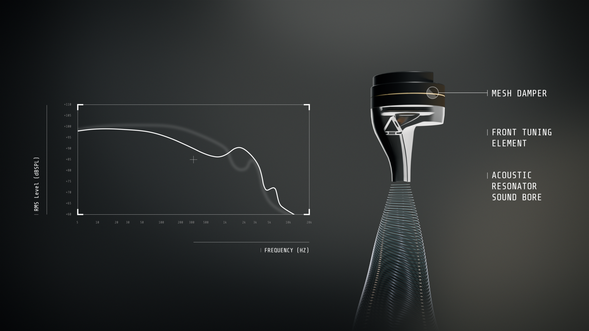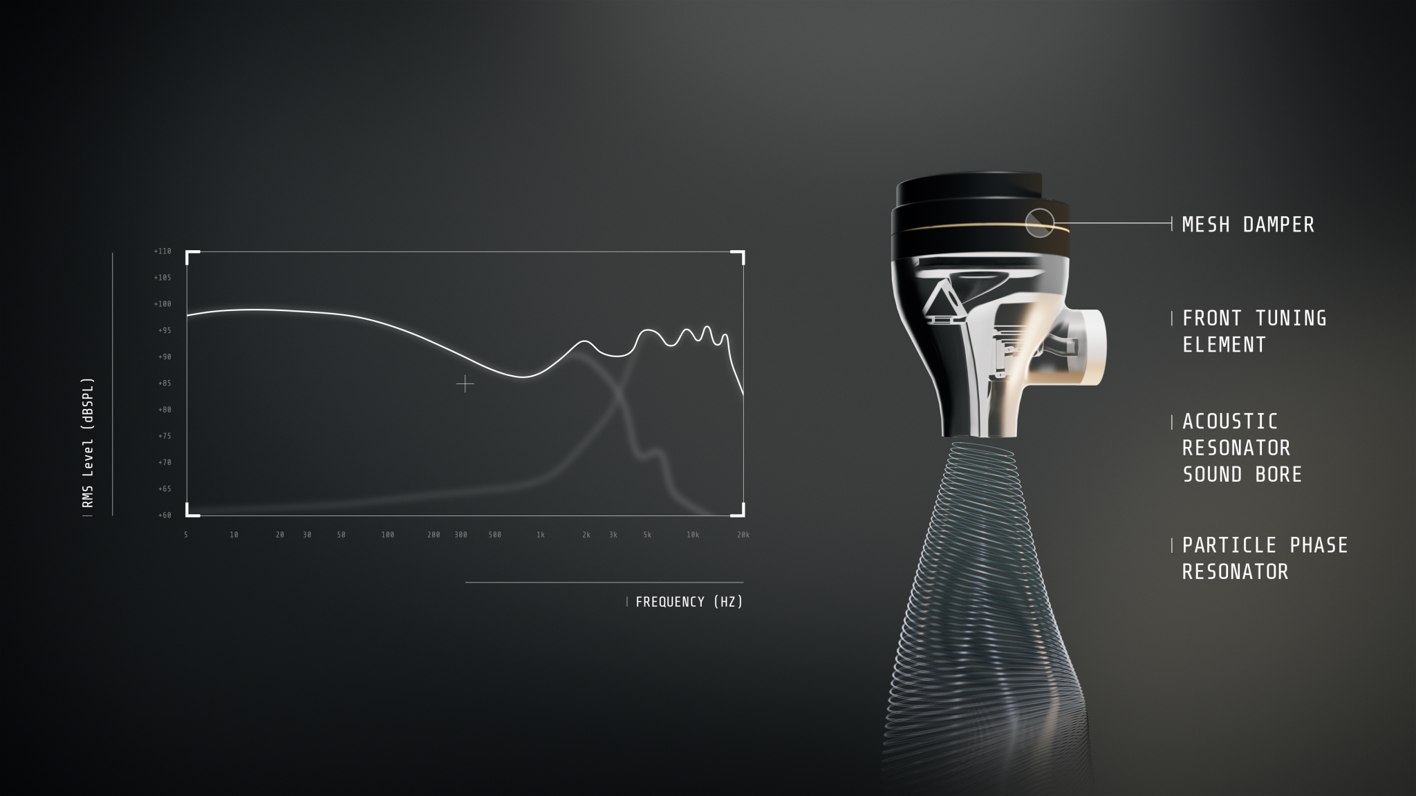 而在負責高頻平板單元(6mm)的調音腔體中,除了用上相同的物料外,更在內部打印出團隊全新研發的PPR 粒子相位共振器 (Particle Phase Resonator),能夠以內部的聲學迷宮,降低多餘的高頻雜訊。亦可以有效避免頻段之間重疊所造成的遮蔽效應,令每個頻段的細節可以被準確還原。