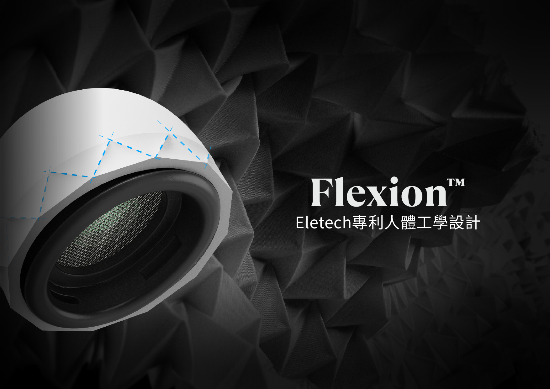 「Flexion™」的耳道形狀記憶矽膠材質讓耳膠具有彎曲並適應耳道形狀和吸收諧振的特性,使其能在遭受形變後迅速恢復原態。即使與人體皮膚接觸,也不會造成任何不適,從而提供一種自然且舒適的佩戴體驗,以達到最優的噪音隔離效果,同時避免傘帽塌陷變形而導致低頻量感損失的問題。