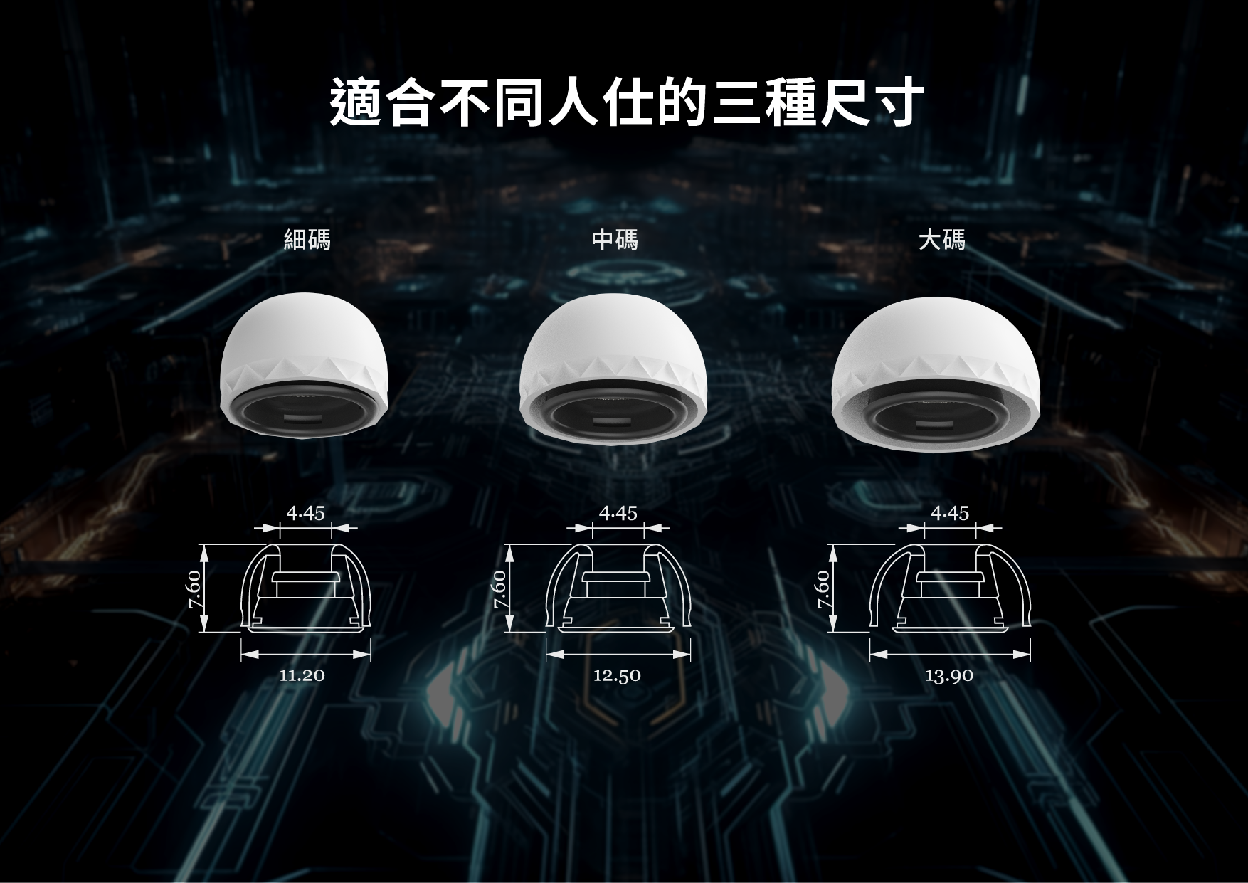 為配合不同用家的耳道, Baroque Airpods Pro 分別推出了三款大小的耳膠以配合大家的需要。