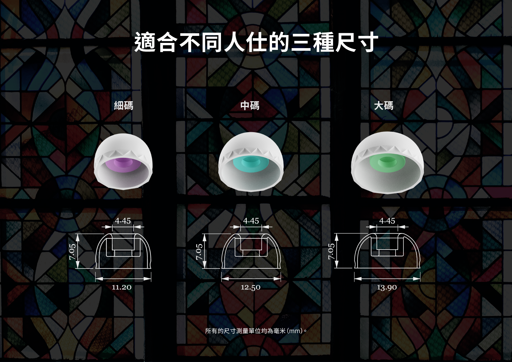 為配合不同用家的耳道, Baroque TWS 分別推出了三款大小的耳膠以配合大家的需要。