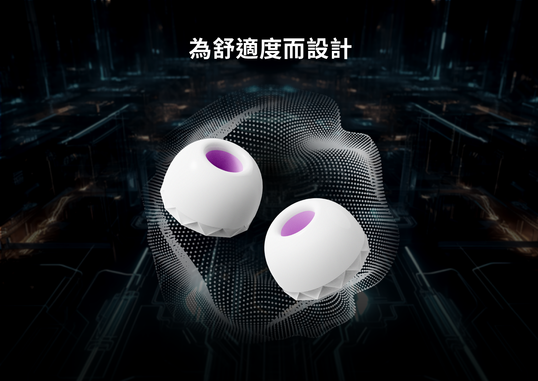 PureShield™技術,這項創新技術使得TWS的「巴洛克」耳膠擁有低過敏性抗菌特性,形成一層保護性塗層,抑制細菌生長。這項創新技術不僅確保了更清潔的佩載體驗,還能在長時間使用後,持久保護耳膠,防止變色、變形和開裂的情況發生。