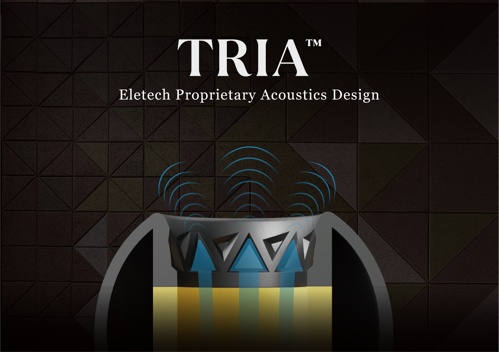 Baroque採用專為耳膠所研發的「TRIA™」聲樂設計技術,這一突破性的技術其靈感源自於音響工程中的隔音板技術。利用聲學擴散的科學原理,「TRIA™」能夠有效地平均分散聲波,使聲音在空間中均勻分佈,防止聲波聚焦於某些特定區域,減少音響反射和共鳴的問題。因此,在良好的聲學擴散環境中,使得樂器和人聲都展現出自然的深度和分離感,塑造出自然和平衡的音場。