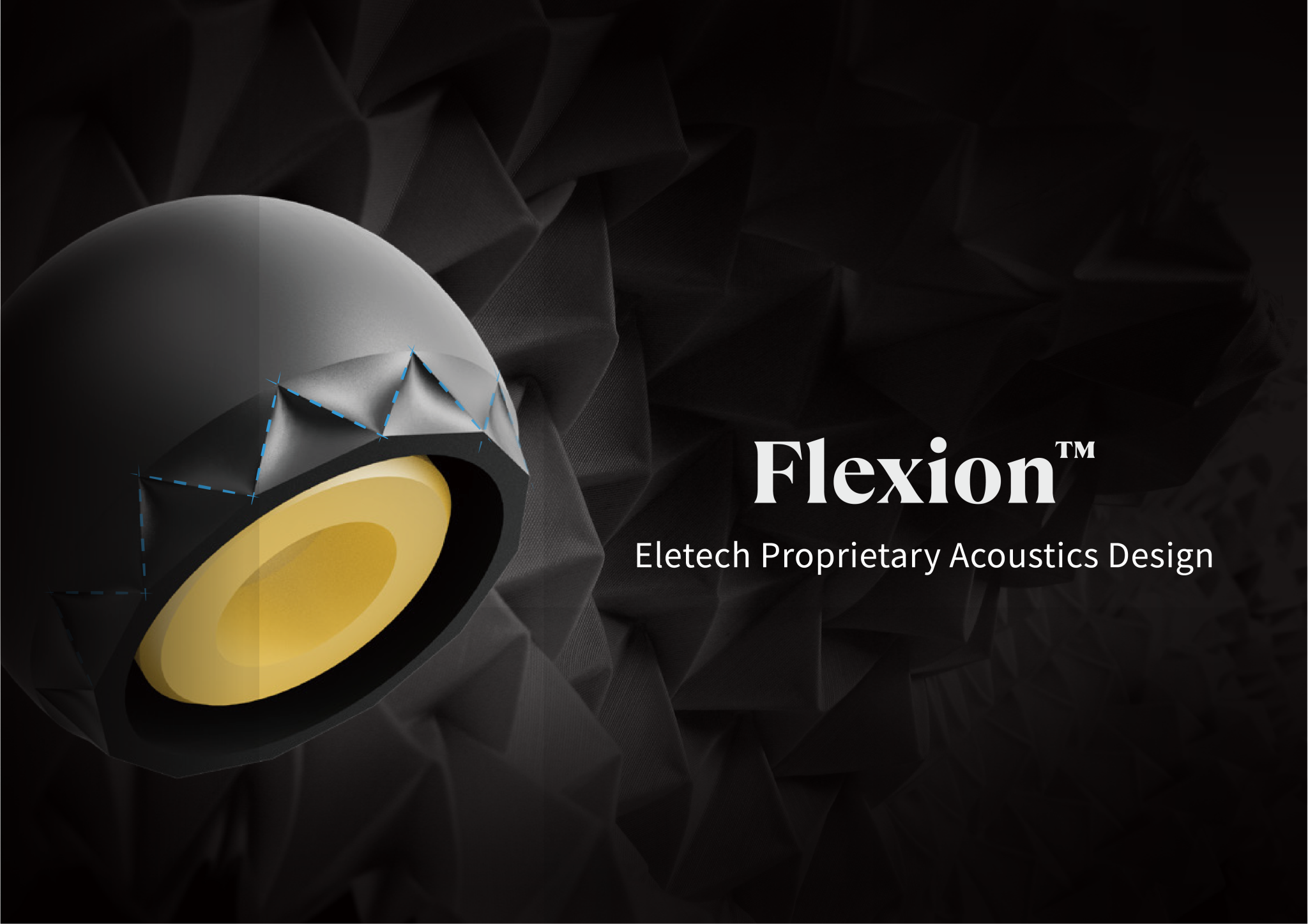 「Flexion™」的耳道形狀記憶矽膠材質讓耳膠具有彎曲並適應耳道形狀和吸收諧振的特性,使其能在遭受形變後迅速恢復原態。即使與人體皮膚接觸,也不會造成任何不適,從而提供一種自然且舒適的佩戴體驗,以達到最優的噪音隔離效果,同時避免傘帽塌陷變形而導致低頻量感損失的問題。