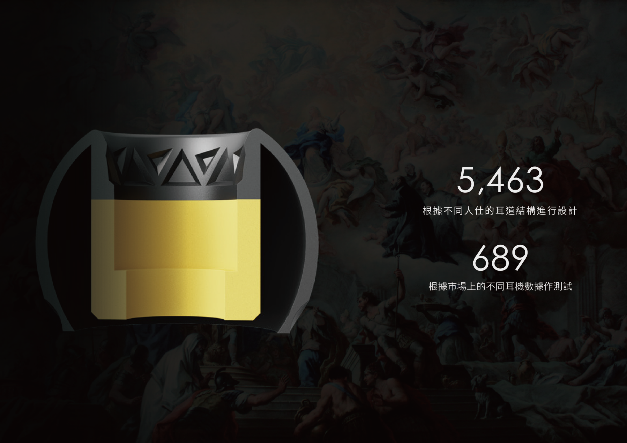 受到摺紙藝術的啟示,「Flexion™」巧妙地融合到了巴洛克系列中,為Baroque提供更高級別的人體工學與靈活性,耳膠末端採用幾何三角結構設計,確保耳機根據耳道形狀更貼服人體皮膚而不容易脫落,同時它通過巧妙地管理和分散多餘的聲波振動,減少了共鳴和失真,從而實現了更為清晰和精確的聲音細節。