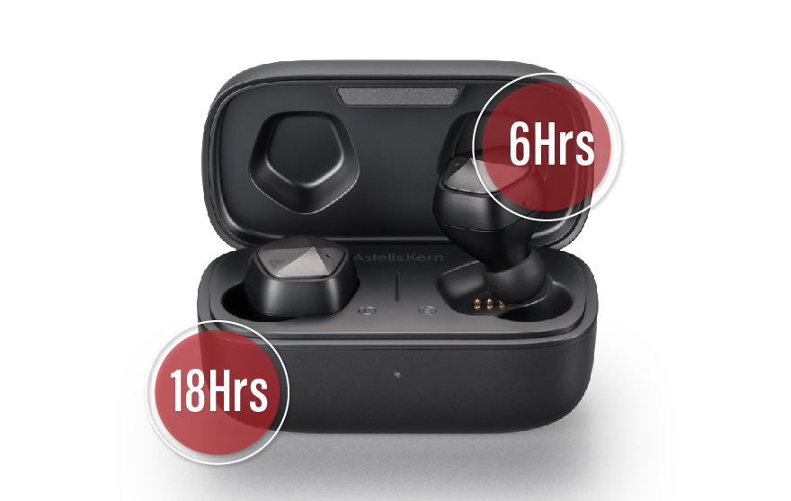耳機本體配備6小時單次續航,配合充電盒18小時續航,令AK UW100支援24小時總續航效能,足以支援全日使用亦無需擔心電量。耳機同時支援無線充電及快充功能,充電10分鐘即可使用長達1小時,方便快捷。