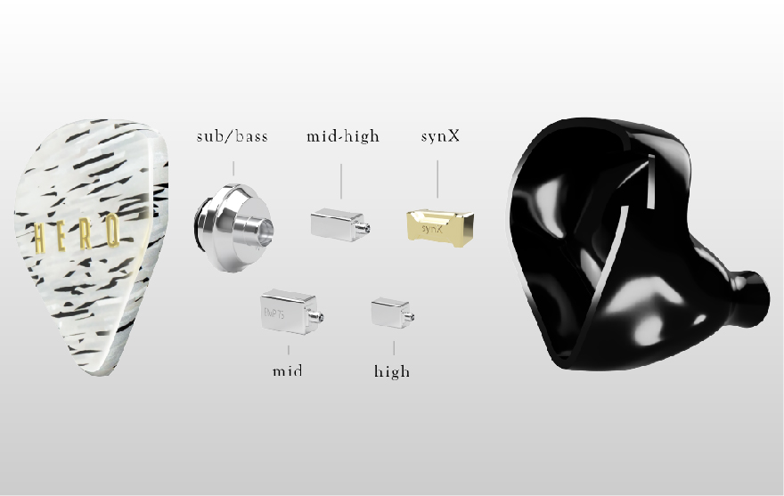 Hero SE 採用了四單元圈鐵混合式單元設計,超低音和低音部份由1顆Empire 自家研發專屬定製的新一代 9mm動圈 W9+ 所負責,W9+ 比上一代W9 主要分別是W9+擁有更大的內部線圈直徑,令作用於將震膜不理想的拉力減少,更有效控制單震幅,從而減少失真。 W9 +消除了先前設計的任何局限性,並在所有音階上提供了無與倫比的低音。 中、中高及高音部份由專屬定製的動鐵單元所負責,透過自家獨有的synX 6路分音技術及A.R.C.吸震塗層吸收大部分諧震,令所有組件更加穩定,帶出豐富,人聲自然又充滿極高音樂細節的表現。