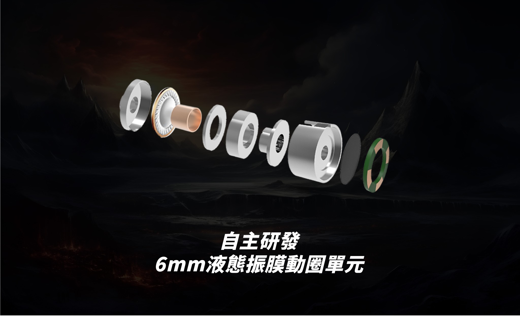 憑藉在聲學設計、材料科學及電聲工程領域超過十年的深厚專業知識與豐富開發經驗,為Hela選用了新一代6mm液態振膜動圈單元。在液態振膜膜片組件的質量和阻尼方面均獲得顯著強化,有效降低非必要的諧振,從而擴展頻響範圍並顯著減少失真。其磁鐵部分採用高精度全封閉式佈局,能夠增強磁場的強度與均勻性,這種強化後的磁場為線圈提供了一個更穩定和均勻的運作環境,增大了磁通量,改善了導磁性能,從而顯著提升了音腔的穩定性,並極大地增強了動圈單元的聲學表現,讓低頻保持飽滿且具有極佳的彈性和鬆弛自然的動態表現。
