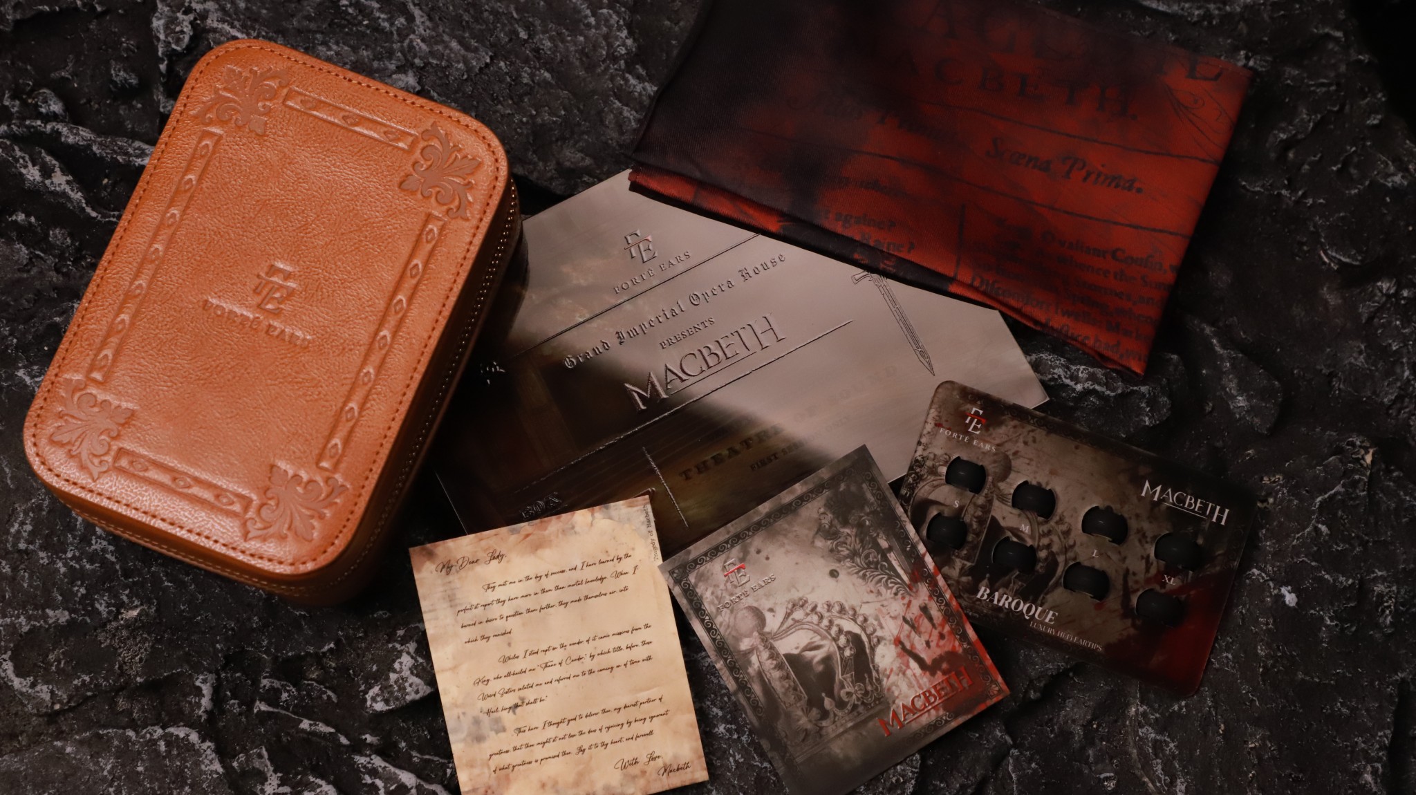 為彰顯Macbeth濃厚的藝術氛圍,Forté Ears為整個包裝特地以歌劇集的形式設計。在配套上同樣非常豐富,配備有一個印壓花紋皮革收納盒,提供柔軟順滑的質感及極佳的保護性能。另外附上仿傚的壓克力透視彩印歌劇院門票,當拿起的瞬間能夠映照出不同的彩印圖案。而紅色花紋印花手帕,象徵著歌劇院的紅色布幕更顯尊貴、獨特的氣勢。耳膠方面,則配備了Eletech的 Baroque 耳膠,令用家擁有舒適無比的配戴感,更貼合耳道內部,加強聲音清晰度和自然感。