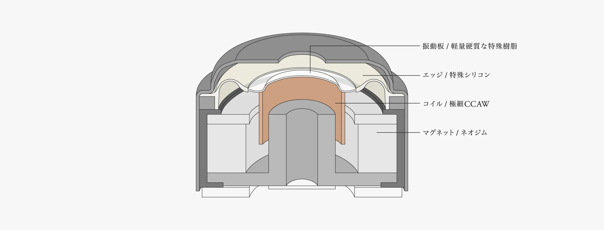 f-Core for MAKE由final 團隊通過f-core 動圈的基礎開發,震膜採用擁有高硬度、輕量的特殊樹脂組成,可有效提供一個優秀的瞬態反應。同時,由於粘合劑具有彈性,會令單元運作受到阻礙,取而代之是透過熱壓的方式,將矽膠邊緣和震膜直接組合而成。