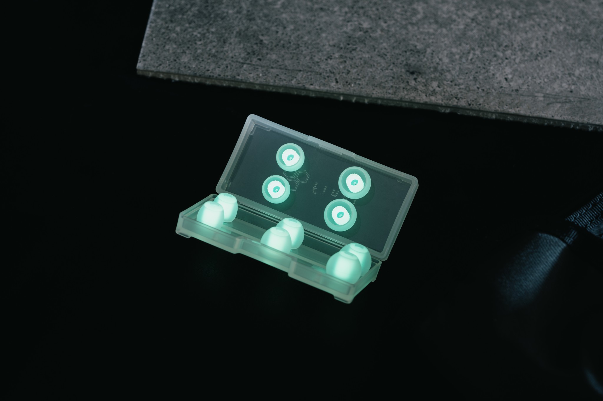 隨附的耳膠採用了雙硬度設計,導管部分由硬矽膠製成,提供強度與靈活性,而與耳朵接觸的部分則使用柔軟矽膠,確保佩戴舒適並具備高隔音效果。此外,耳膠為透明設計,還具備夜光功能,便於用家在黑暗環境中操作,體現實用與設計的完美結合。