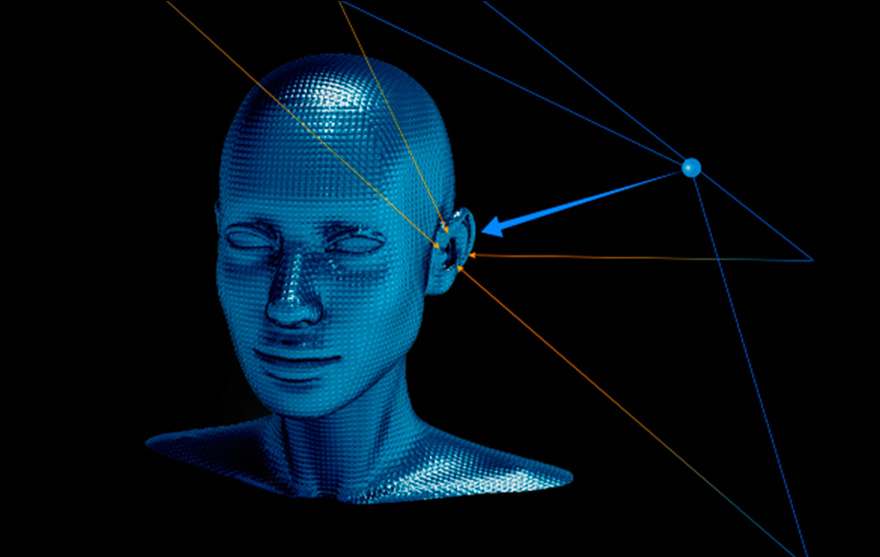 Mobius 以每1/1000s 的頻率,夠精細地偵測頭部移動,並把資料推送至 3D 模擬系統之中