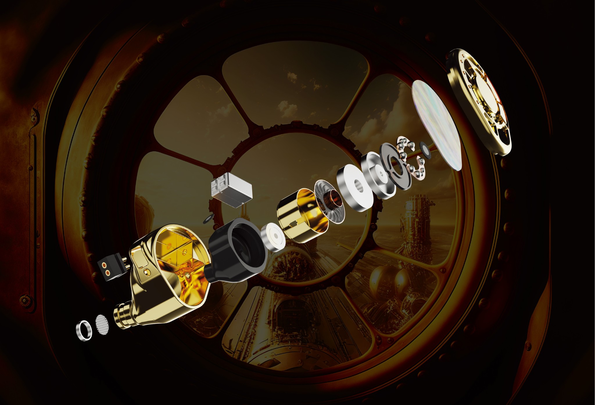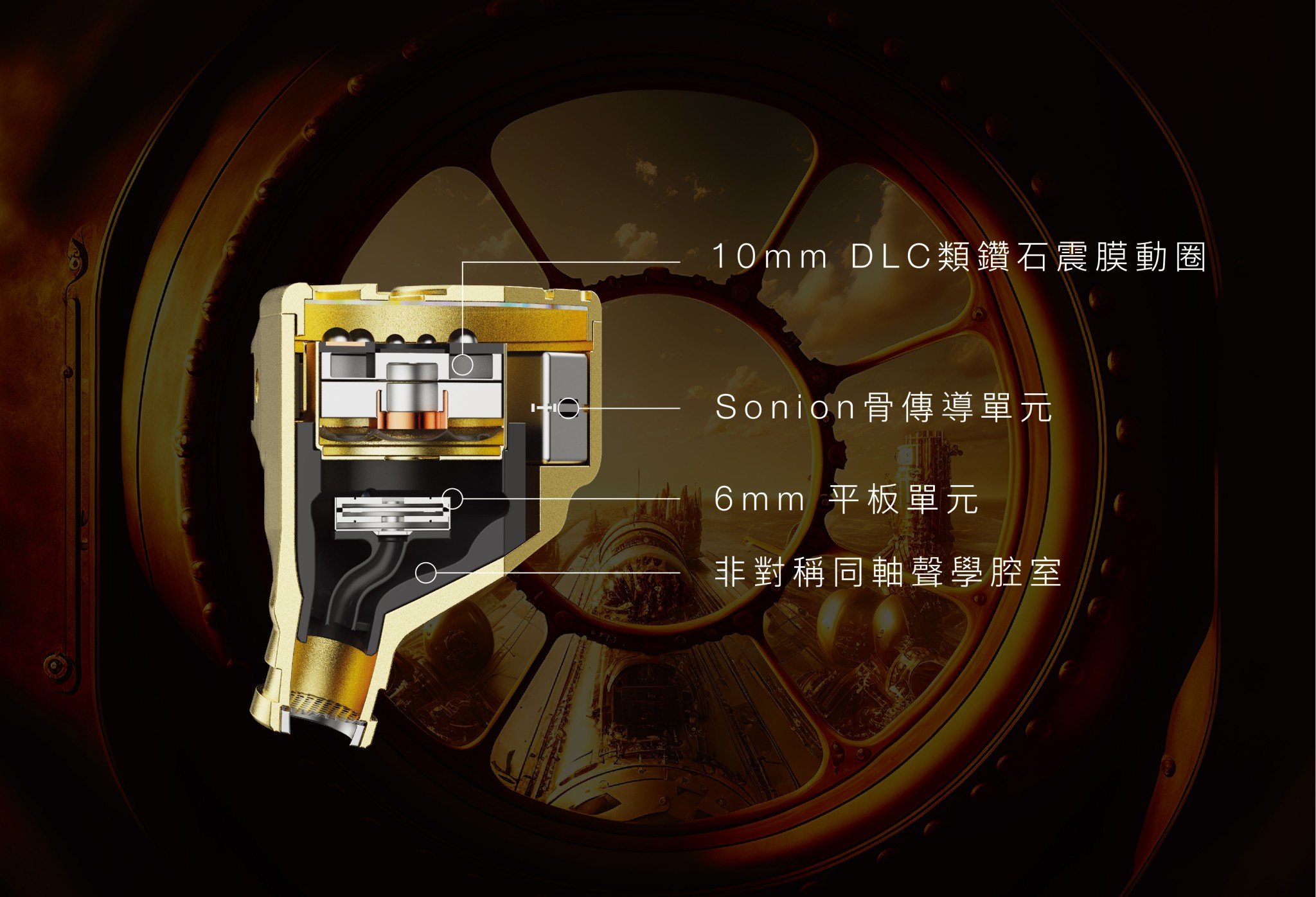 Nautilus身上的Sonion骨傳導單元、6mm平板單元、以及10mm DLC類鑽石震膜動圈,能夠全方位銜蓋所有頻段,可以精準捕捉每個聲音細節。同時為了進一步追求更深邃的背景,以及實現出更高還原的低頻細節,動圈外殼上亦採用鍍金黃銅為材,以抑制單元運作時的諧震。由於三款單元在空間感、還原度上都擁有不同優點,因此在共同運作時,Nautilus便可以各取不同單元的優勢,令用家可以感受到更多的音樂細節。