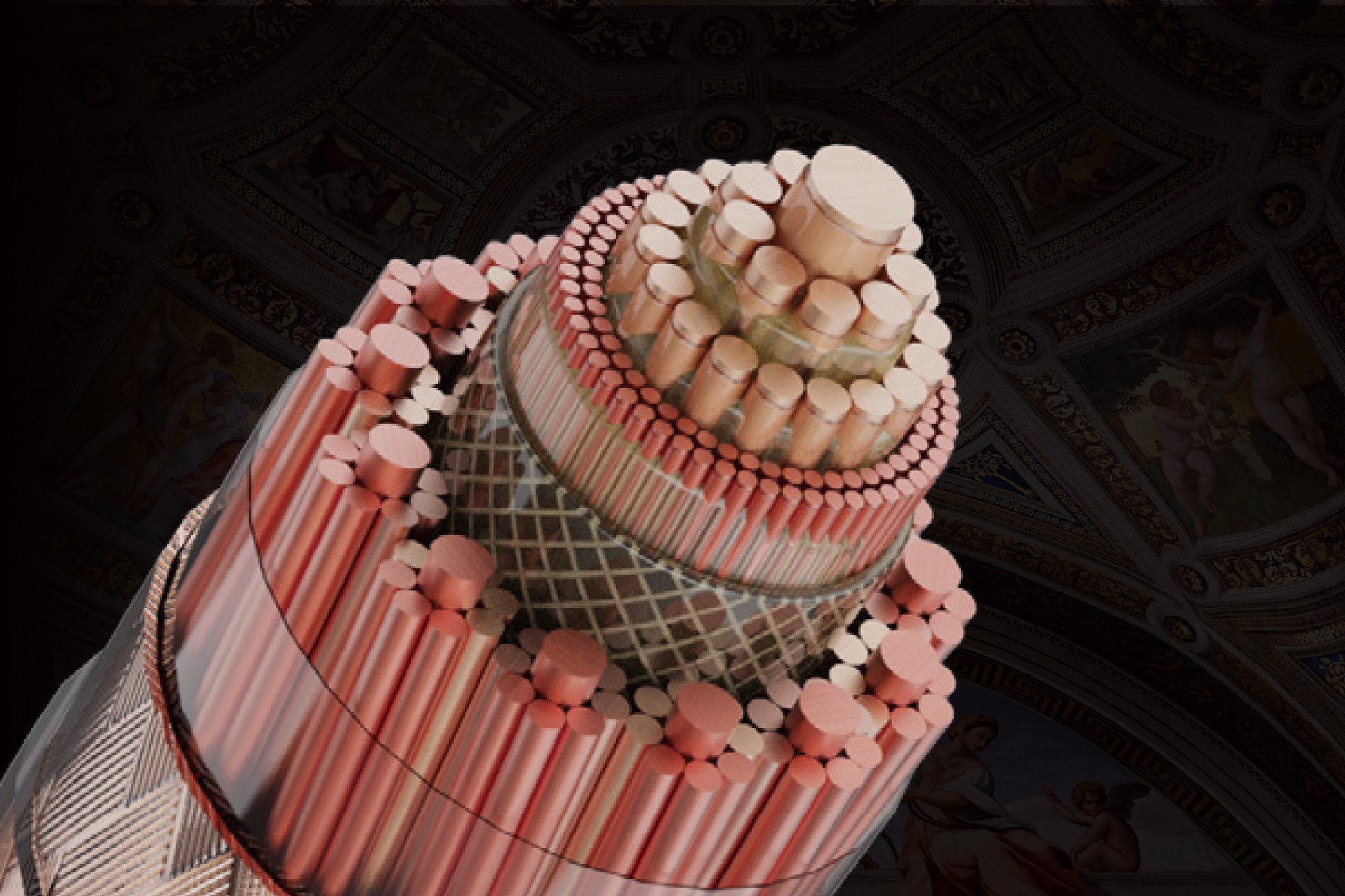 亞里士多德成功地超越了先前的設計理念,為銅材料的應用開創了新的疆界,以嶄新的幾何編織法配置以及物料,首次採用全新開發的三重同軸雙混合結構,更是史無前例地用上厚達18 AWG的三重同軸特粗利茲線芯,務求以最少的線芯盡數地利用線股內的空間,充分地填補線股以至到邊緣之間的空隙,令電流均勻地流過整條導線,有效大幅降低集膚效應,因此擁有遠超四絞線材的訊息量和聲音密度。