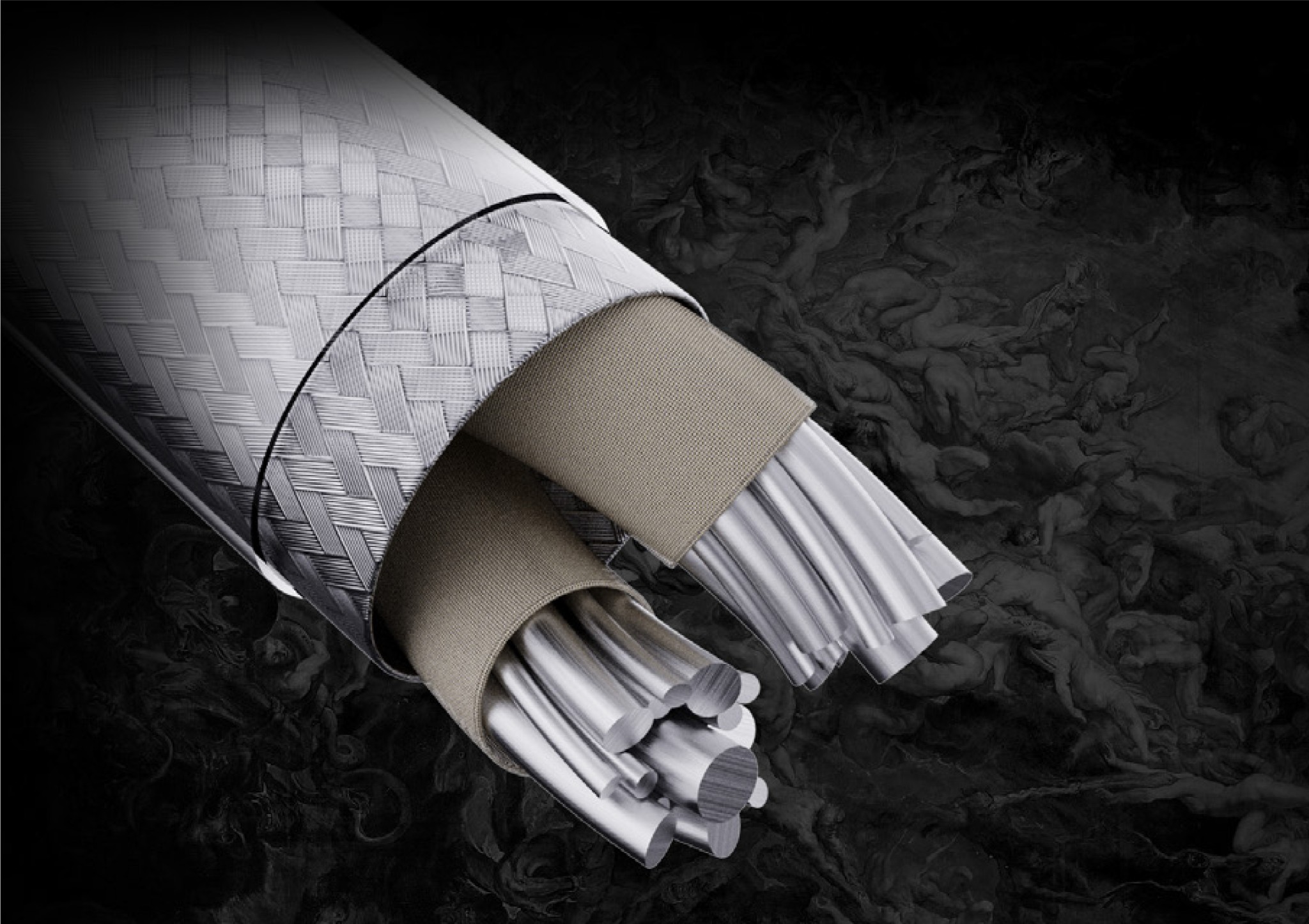 混合了兩款定製高純度單晶銀導體,並在外層加上EMF絕緣的OFC純銀屏蔽網,在內層則加上一個纖維陶瓷屏蔽層,有效阻隔電磁波干擾,提高線材的整體的傳輸效率和傳輸穩定性,而兩層屏蔽網令聲音背景更黑更靜,突出每一個細節。