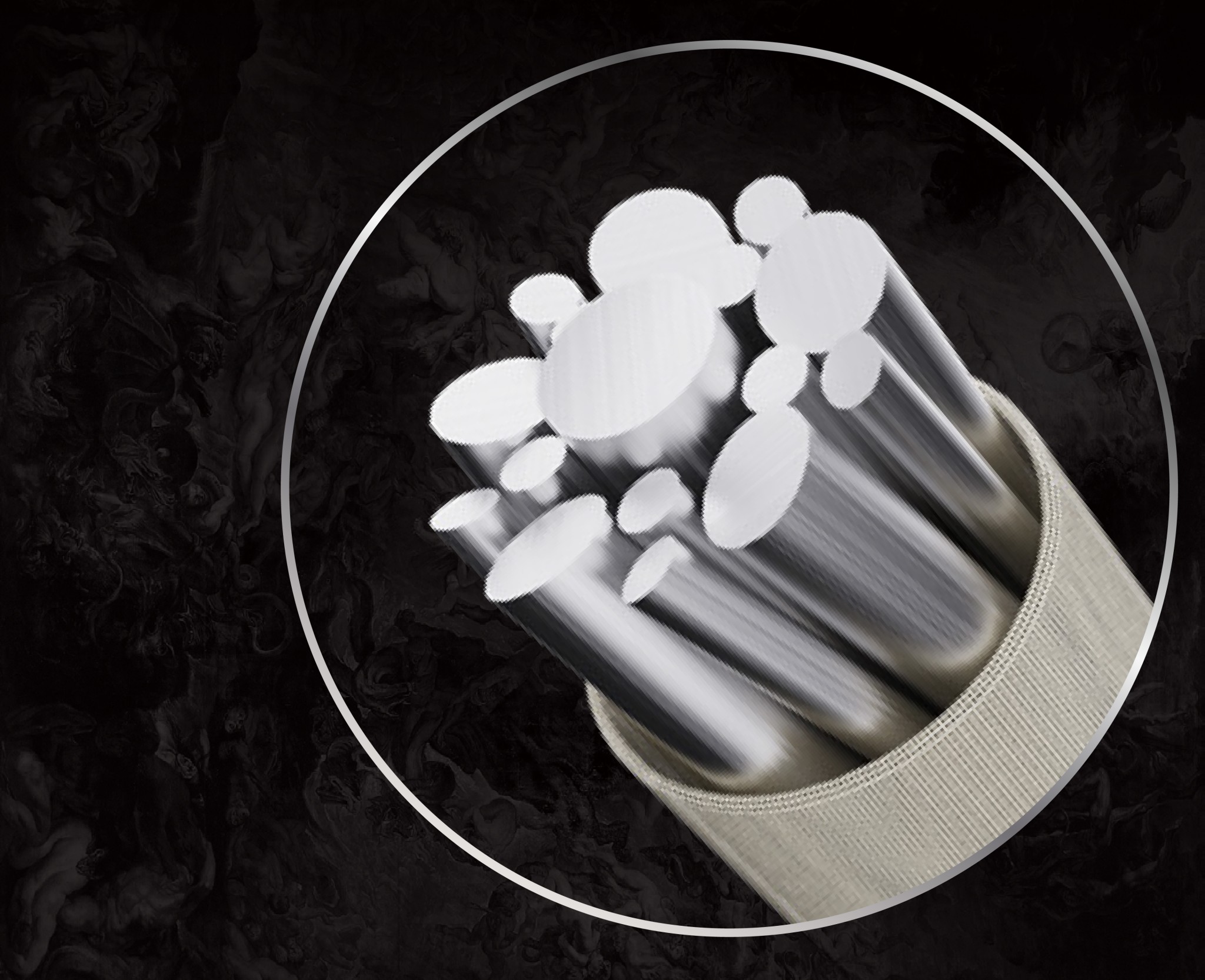 沿用嶄新的雙幾何線材編織結構,將兩款不同的線股混合在同一個核心之中。較幼細的線股主要負責高頻的部份,而較粗身的線股就是負責中頻及低頻。 當兩者取得一個平衡點之後,高音的延伸就會有所提升,同時減少低頻衰減,表現出更立體的環狀音場和空間感,更突出的聲音結像和透明感。