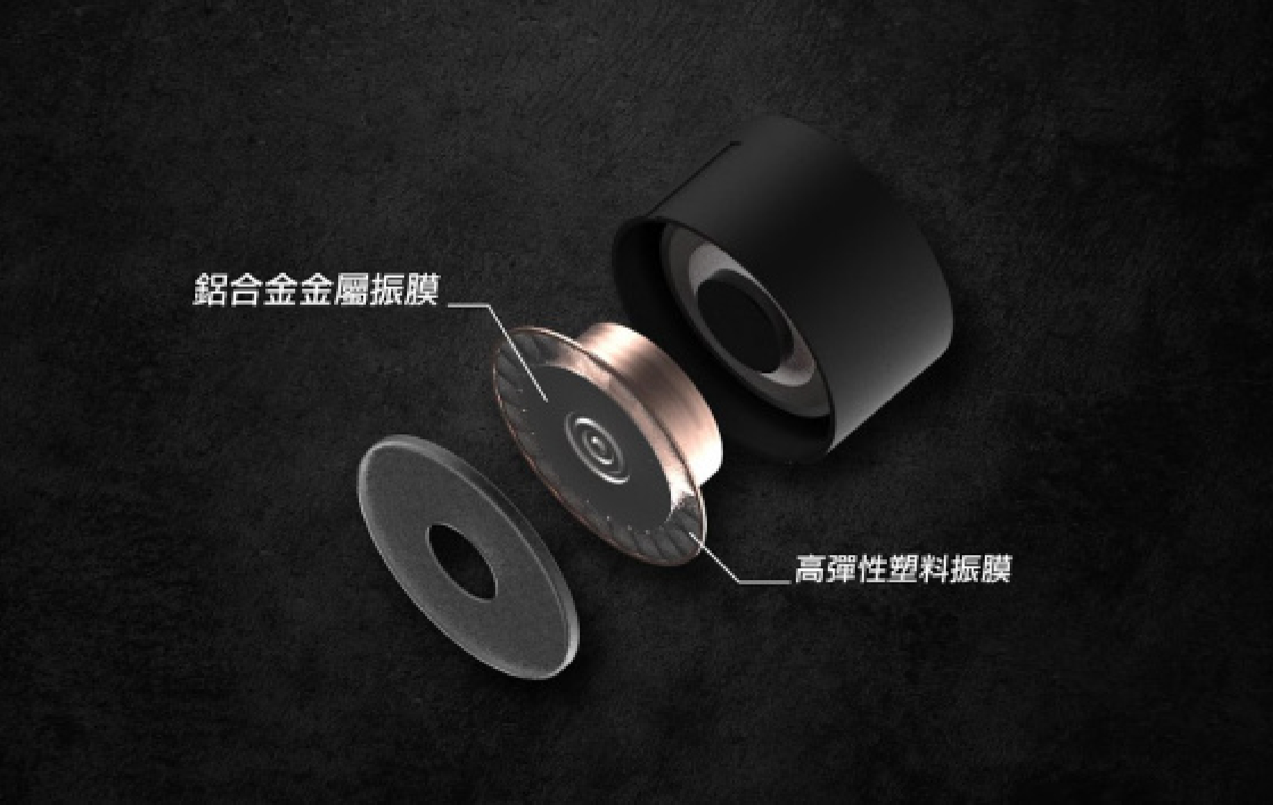 Rise採用8mm複合動圈單元,振膜由兩種不同材質構成。外圈採用輕質高彈性塑料,確保低頻能量輸出飽滿有力;內圈則使用剛性優異的鋁合金材質,呈現中頻音色通透析淨,還原音樂紋理細節。這種內外環結構的創新組合,實現了低中頻段的完美平衡,低頻迷人動感,中頻解析力十足,為您帶來極富質感的聆聽體驗。