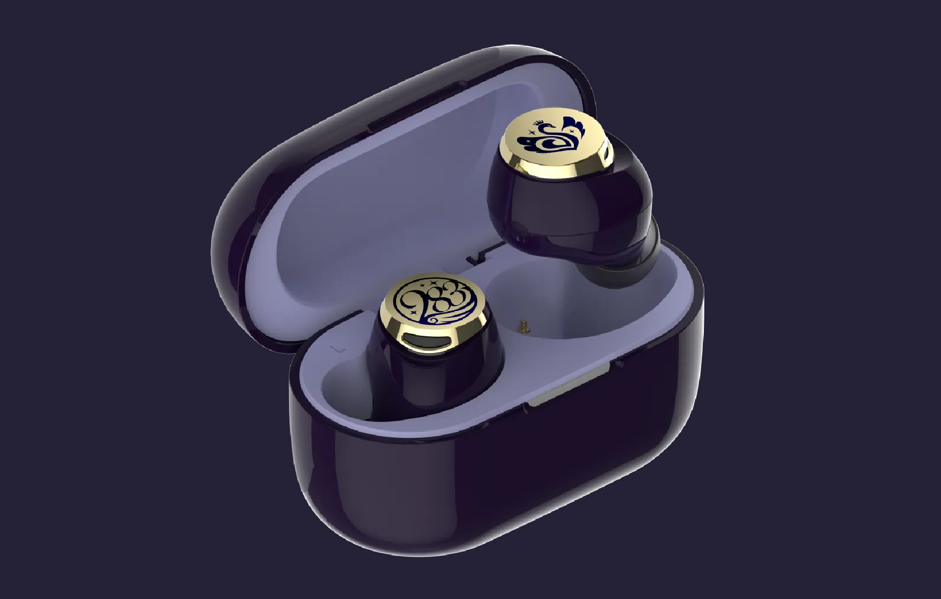 充電盒的一大亮點是,偶像大師閃耀色彩,標誌性的「羽毛」由耳機本體上的天鵝標記來象徵,帶有283 Production徽標。
