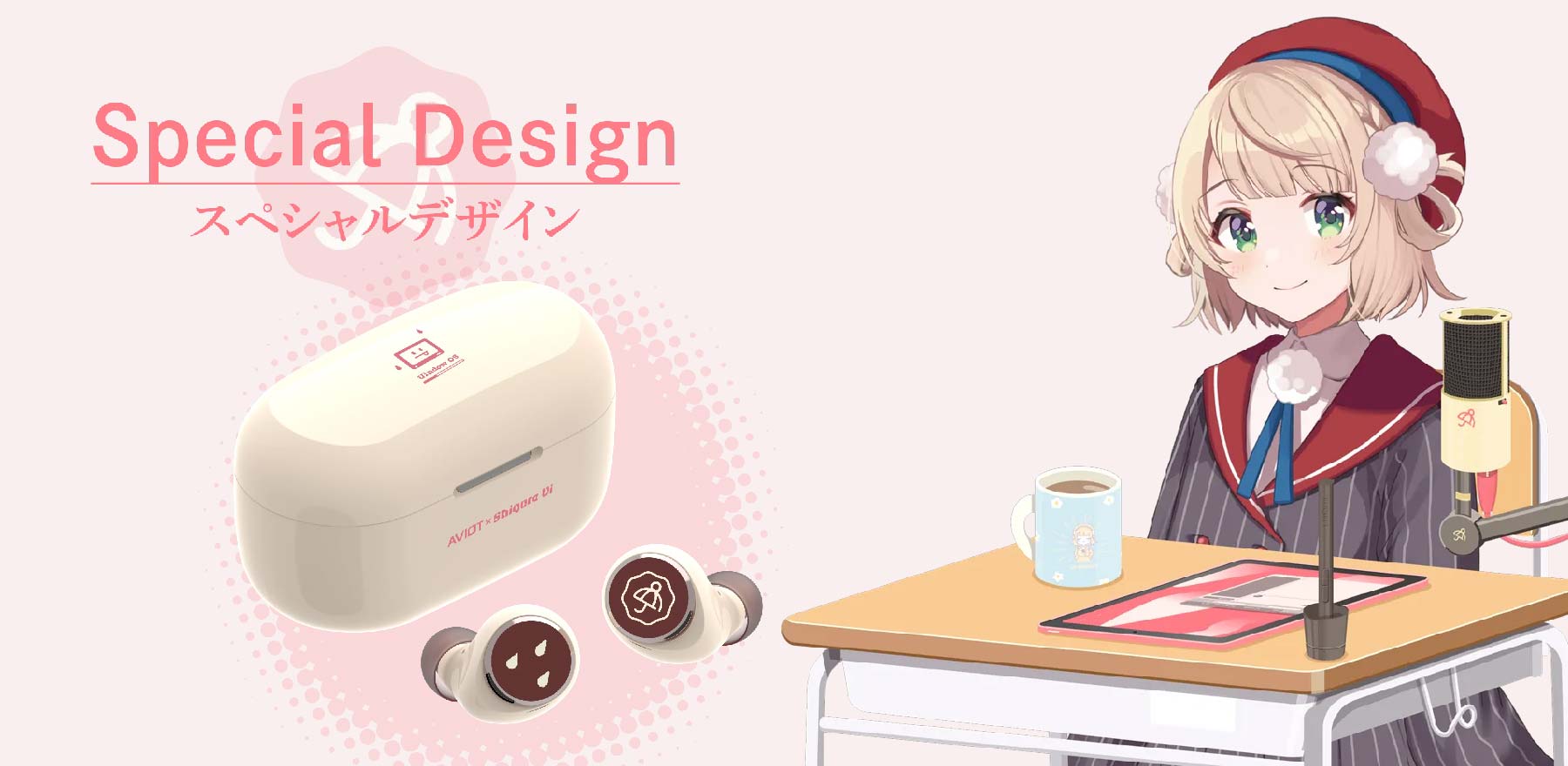 耳機設計完全由時雨羽衣監督。 奶油色配色的充電盒和耳機本體是在時雨羽衣的完全監督下專門設計的。這是粉絲們的必備單品,只要隨身攜帶,就能讓你時時刻刻感受到熟悉的感覺。