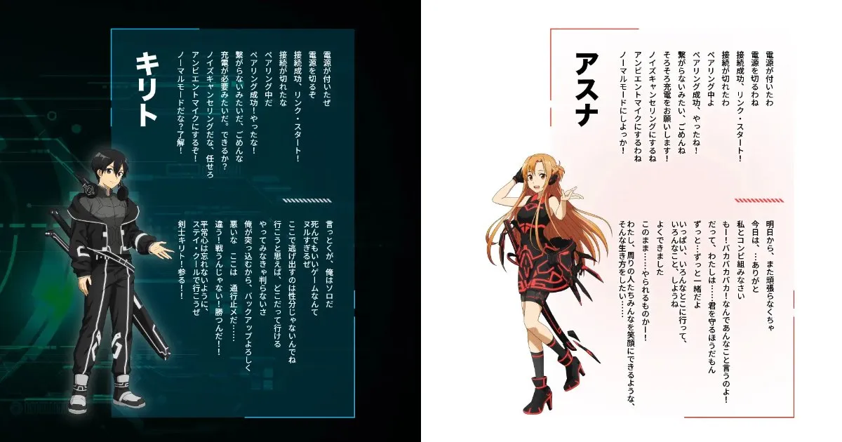 AVIOT新推出體現《刀劍神域》世界魅力的完全無線耳機。以「黑」和「白」為基礎,以像徵人物的圖案為基礎的特別設計,以及全新繪製的包裝。超過 170 種全新錄製的聲音,生動地帶回了他們走過的許多世界的回憶。與音樂一起,我們回到英雄的故事。