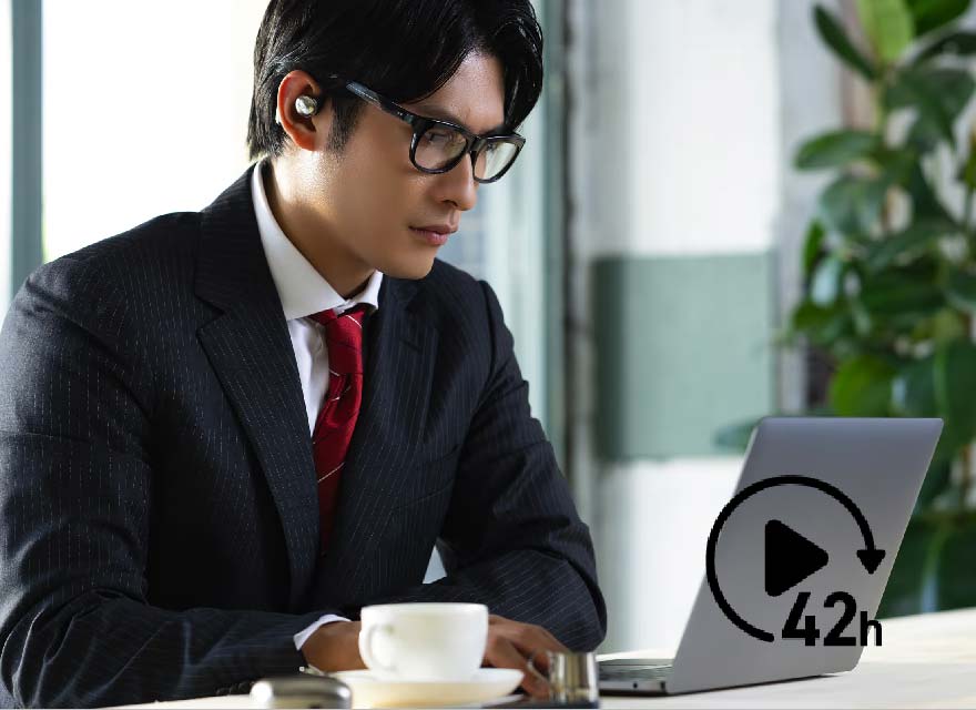 儘管TE-H1採用輕量化設計,但耳機即可提供長達 12 小時的音樂播放時間,加上充電盒可提供長達 42 小時的音樂播放時間。此外,它還支援長達6小時的通話時間,辦公室使用無壓力。它還支援快速充電,只需充電 10 分鐘即可播放長達 60 分鐘。