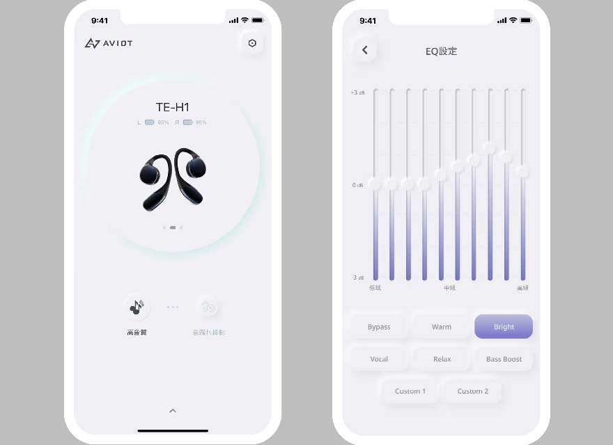 您可以依照自己的喜好訂製AVIOT的耳機,包括耳機偵測功能和客製化10段均衡器,讓您可以依照自己喜歡的音樂精細調整音質。