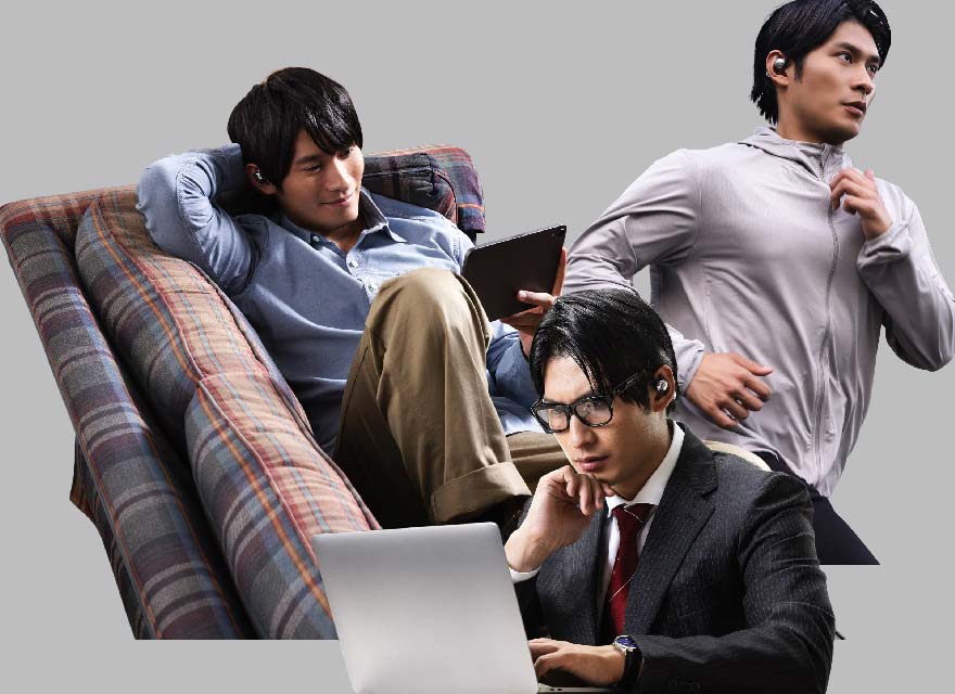 透過從預設的「高品質模式」切換,您可以在保持音量的同時減少聲音洩漏。此外,當周圍環境吵雜時,例如戶外或運動期間,您可以切換到「音量優先模式」。此規格可讓您根據場景使用三種模式。