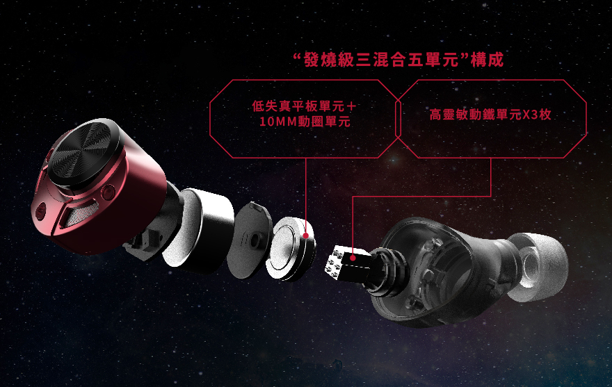 (10mm動圈+6mm平板單元+3枚動鐵單元)