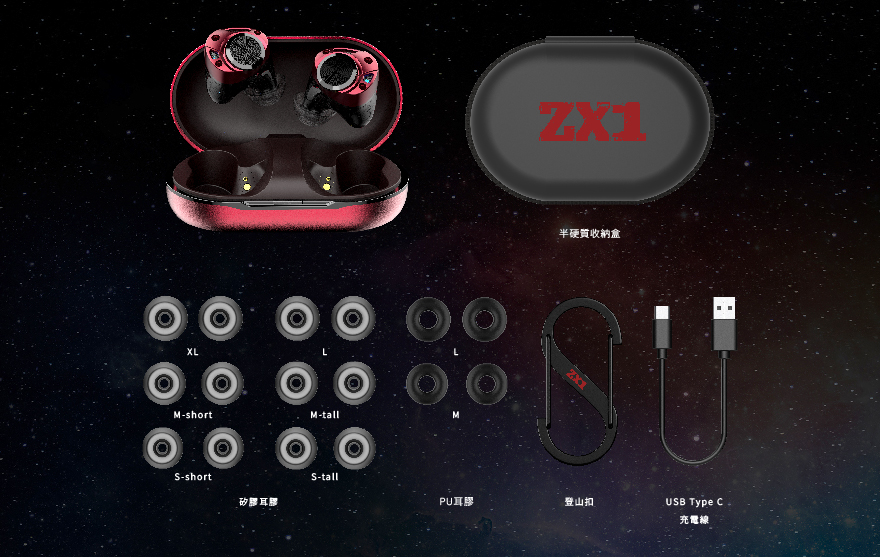矽膠耳膠:S-short/S-tall/M-short/M-tall/L/XL 各1對 、