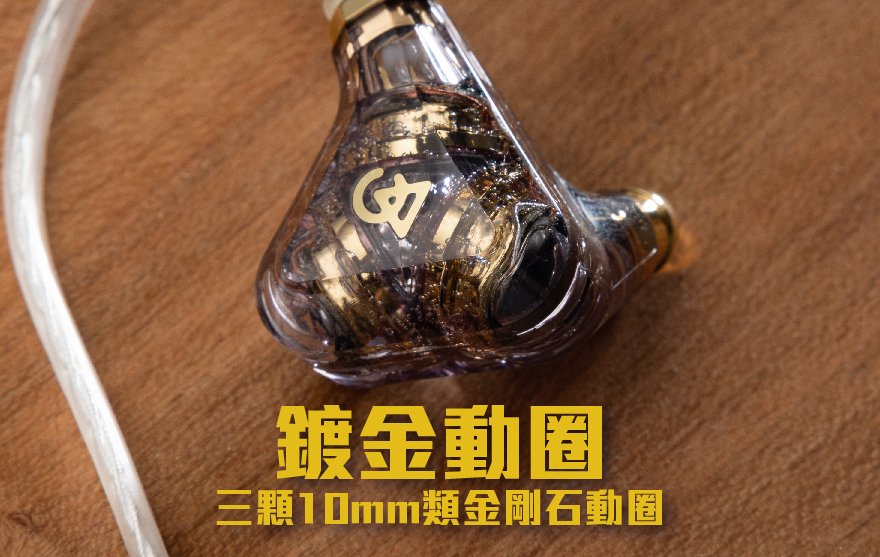 三顆全頻10mmADLC類金剛石鍍金動圈