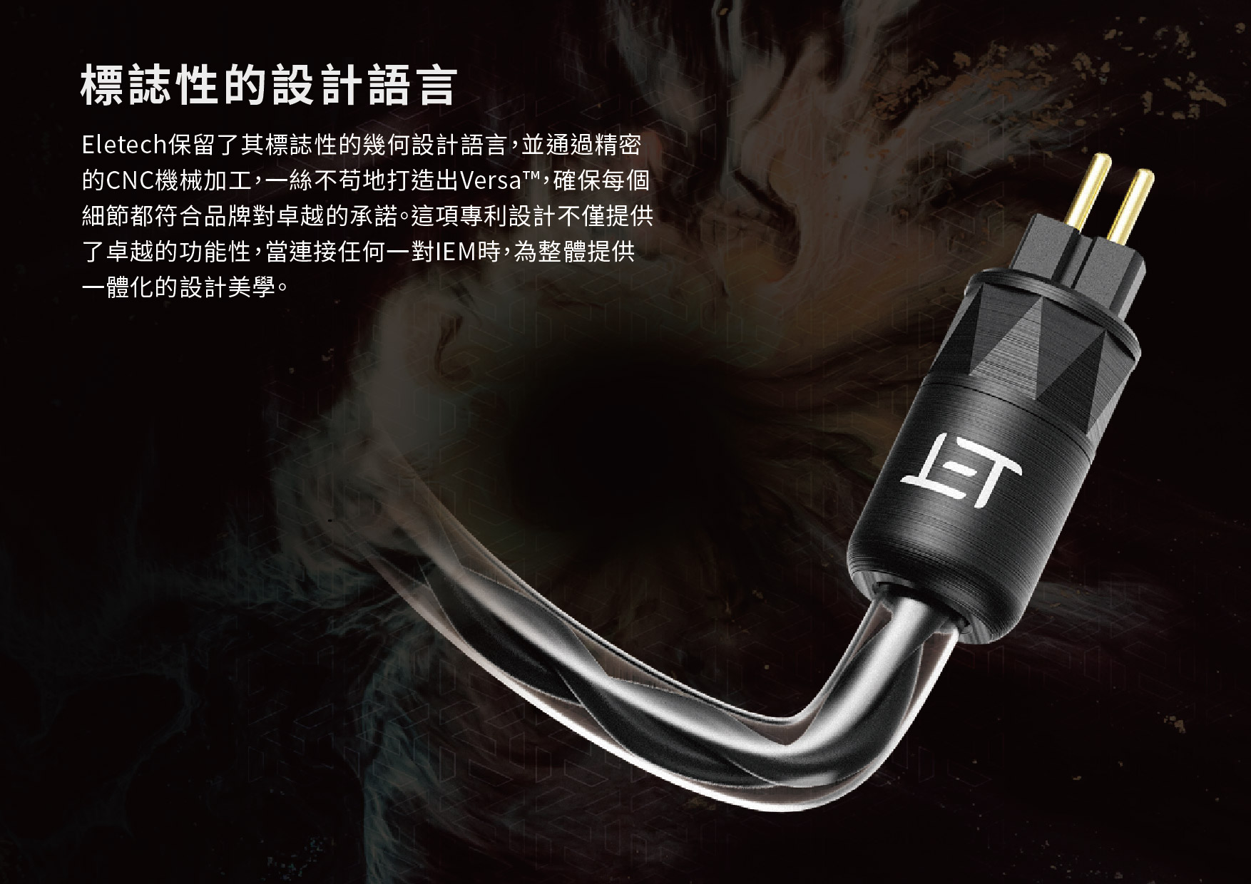 Eletech保留了其標誌性的幾何設計語言,並通過精密的CNC機械加工,一絲不苟地打造出Versa™,確保每個細節都符合品牌對卓越的承諾。這項專利設計不僅提供了卓越的功能性,當連接任何一對IEM時,為整體提供一體化的設計美學。