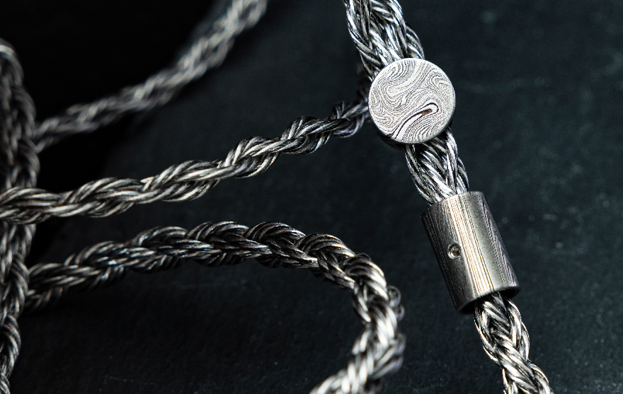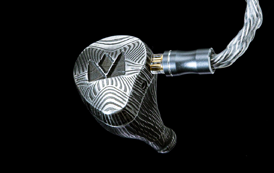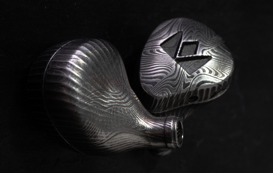 用於製作大馬士革鋼的鋼材自然經過精挑細選,用上醫療級別的不鏽鋼作為主要材料,經過不斷錘打,達到大馬士革鋼當中,珍品級別的150層錘紋。面板上面的錘紋除了經由Chris Ploof設計,具有相當藝術成分之外,聲音因素才是最先決的考慮,因為通過不斷錘打,可以將雜質從鋼材之中分離,令到外殼密度及硬度更高,超過一般鋼材的硬度,達到洛氏硬度HRC60標準。亦意味住耳機控制諧振的能力更加強,達致近乎零共振的優異性能,令到耳機產生更少音染,聲音更加厚實,將三頻還原得更精準。
