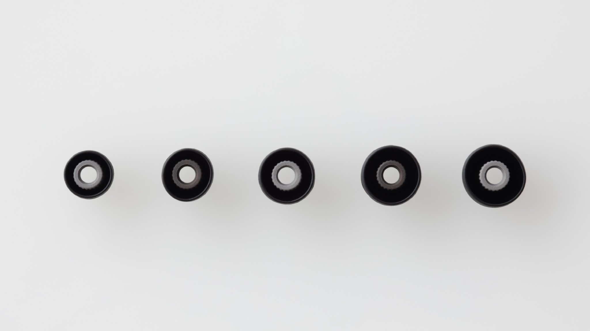 隨附5種尺寸的發燒級專用耳膠「TYPE E 無線專用版本」,提供柔軟的貼合感和優異的隔音效果。耳塞以輕柔覆蓋耳道入口的設計,讓長時間佩戴也幾乎無異物感,真正實現「極致舒適感」。此外,不同尺寸的耳膠軸色交替使用(淺灰色和深灰色交替),方便輕鬆識別適合自己的尺寸。