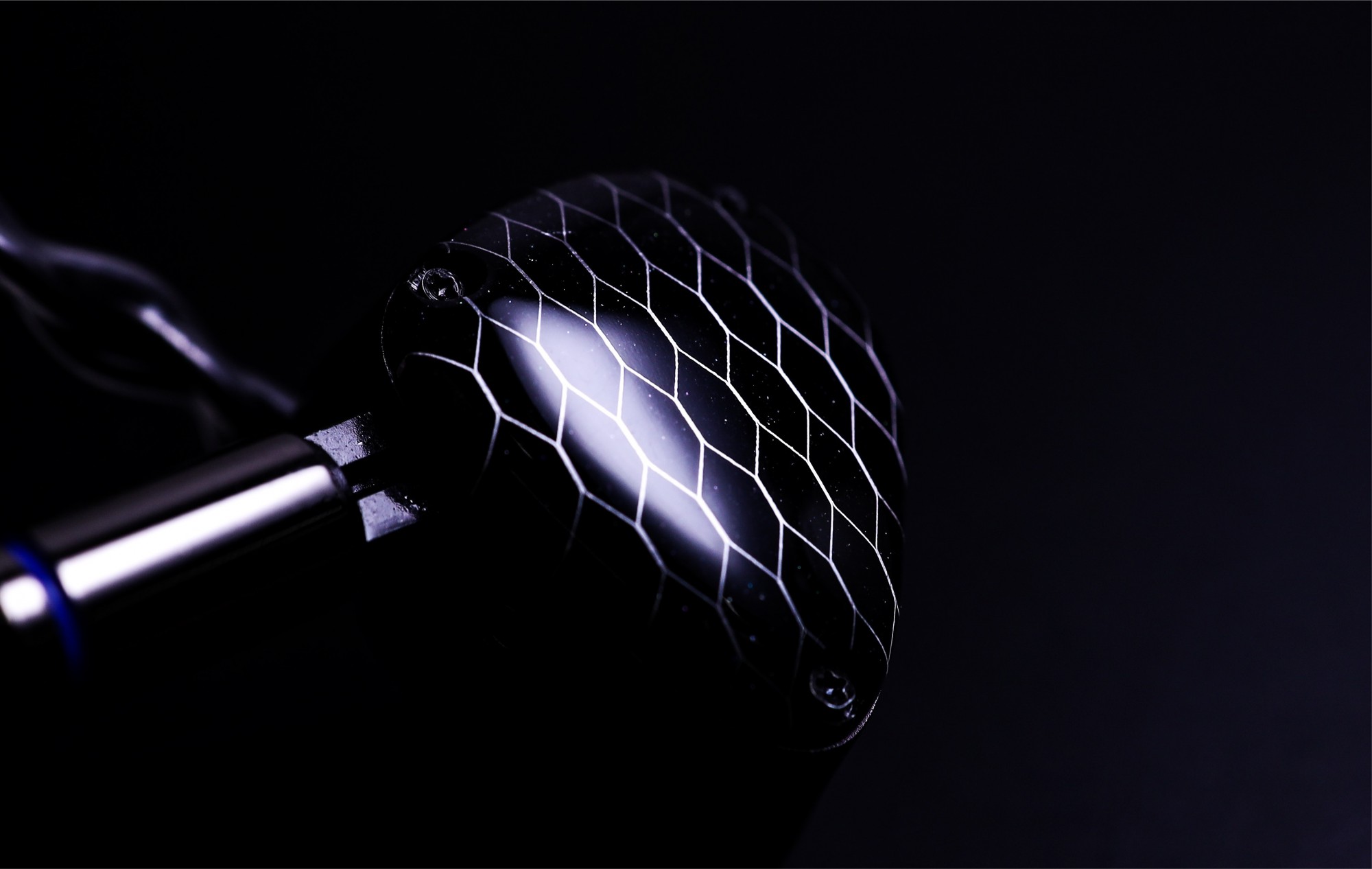 擅長利用不同物料及手工藝術的Dr. John 於Zephyr的面板加入具“Wizard Design”特式風格,Dr. John於普遍受音樂人喜歡的黑色色調之下,加入了具有科技感的"Black Matrix"作為面版設計,物料以金屬六角蜂巢網面配搭黑金閃粉,在不同燈光角度下也能看到特別的閃爍效果。 “Black Matrix”作為Noble定製耳機其中的面板選項,處理物料及過程也相當考功夫,只要切割或打磨時出錯就會浪費整塊面版。為構造整隻耳機形象,就算面板工序更複雜秏時,亦堅持加入整體設計當中,體現出Dr. John認為耳機就是藝術品的執著。